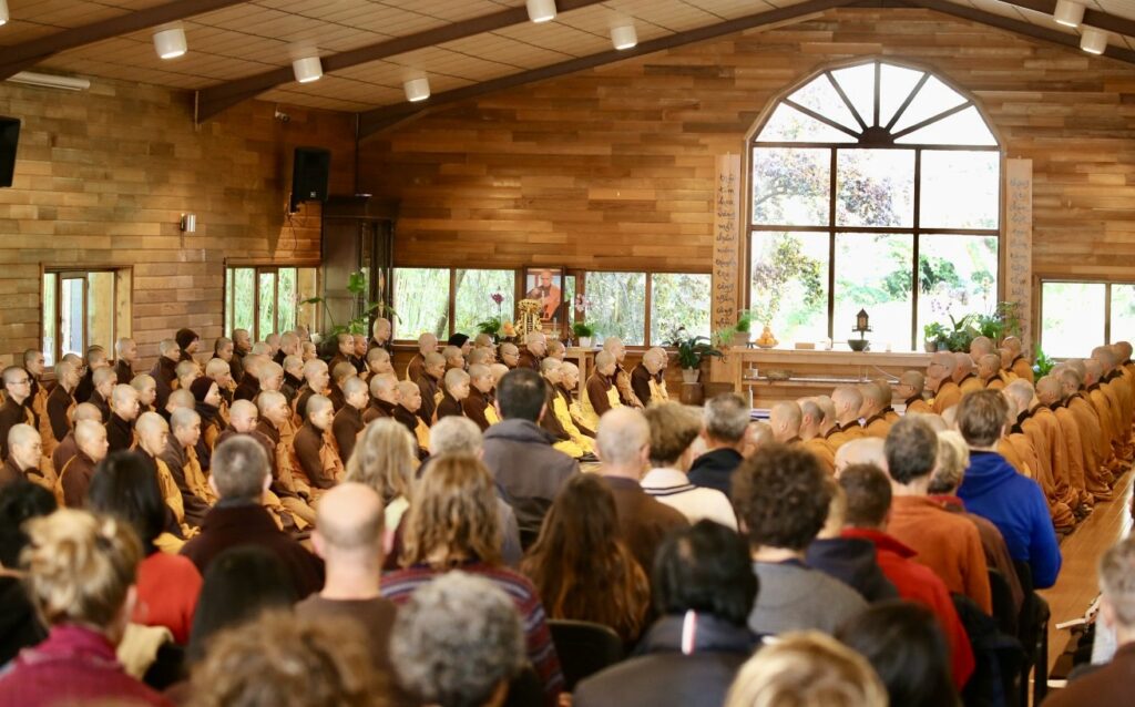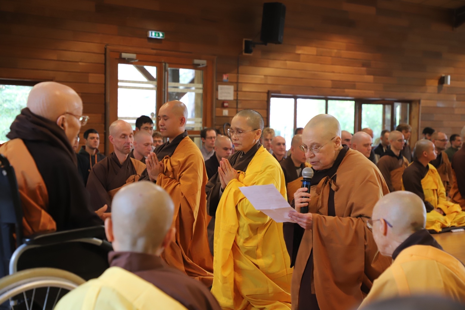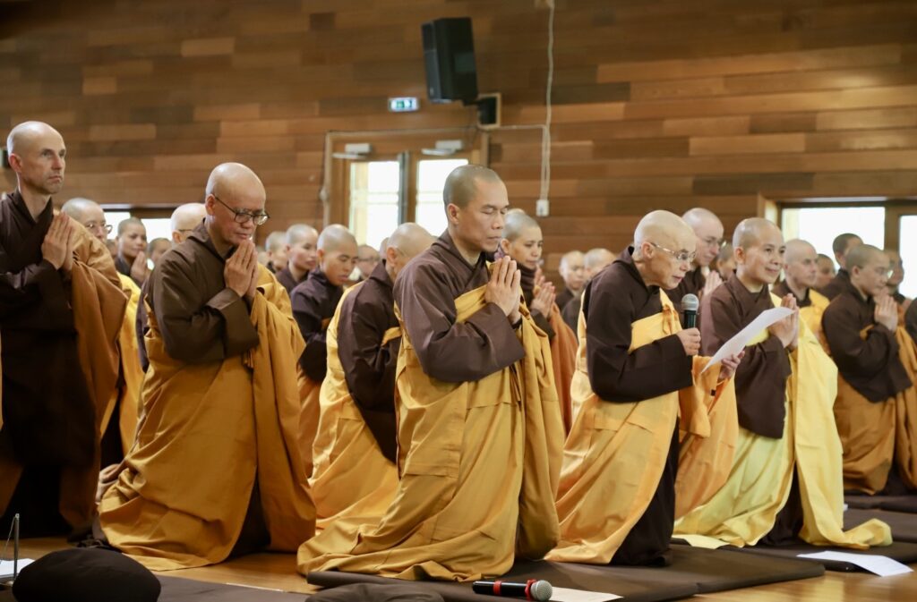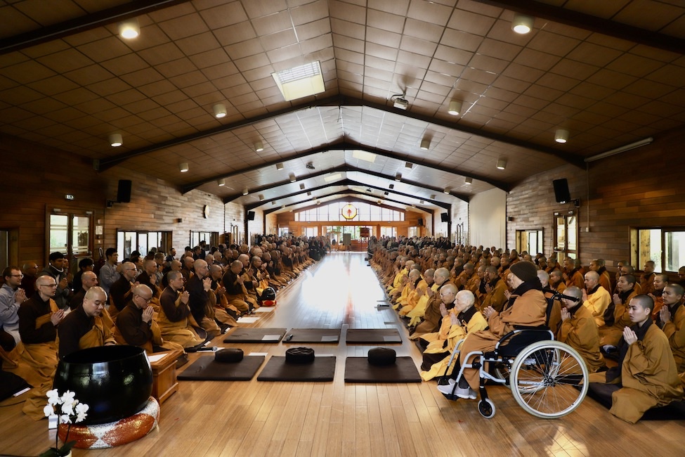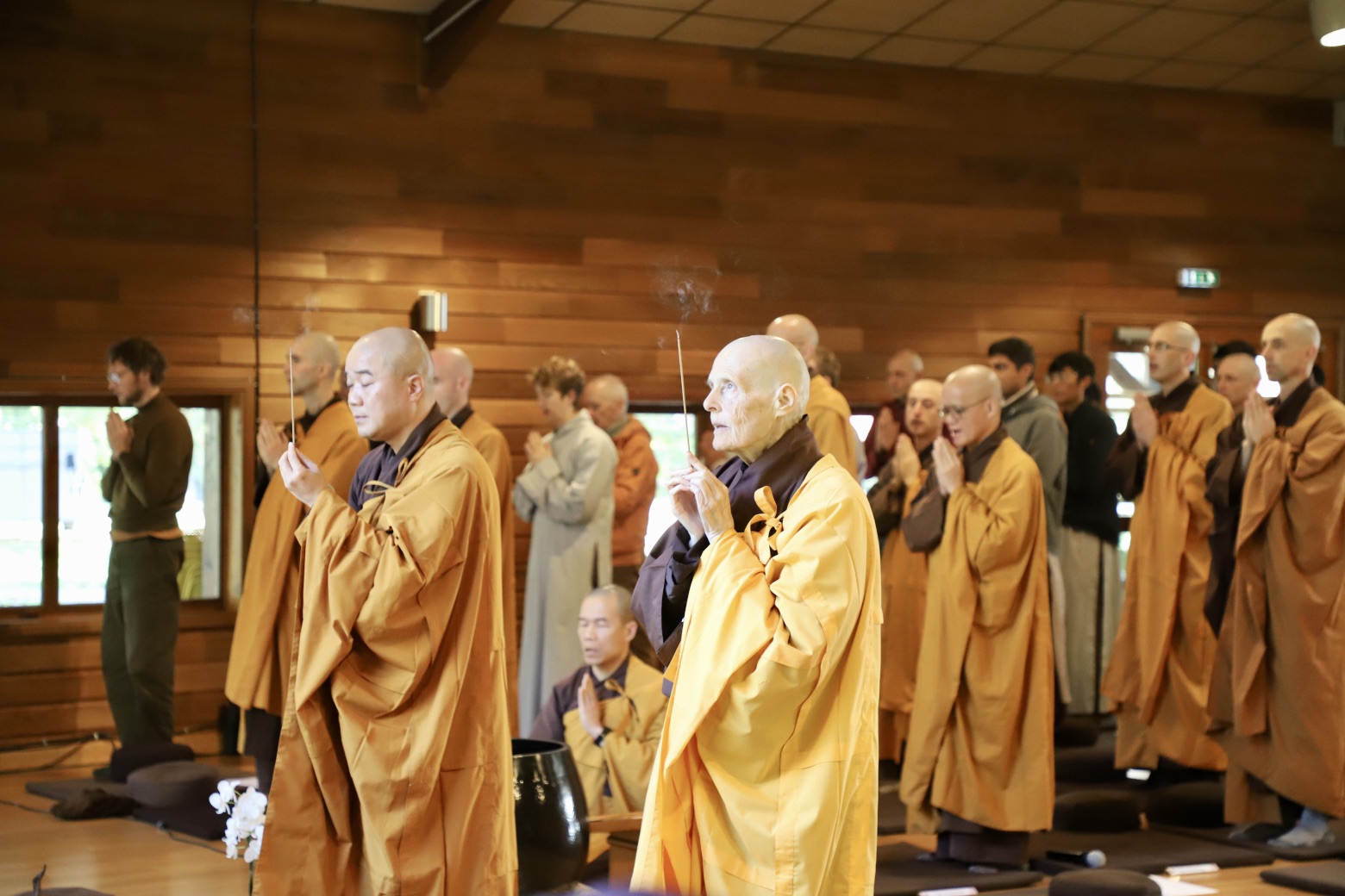 On 23 October, we formally opened the Plum Village Monastery Rains Retreat with the Face-to-Face Ceremony (Ceremony of Refuge) with 249 practitioners (159 monastics and 90 lay friends), committing to practice dwelling peacefully together for 90 days.