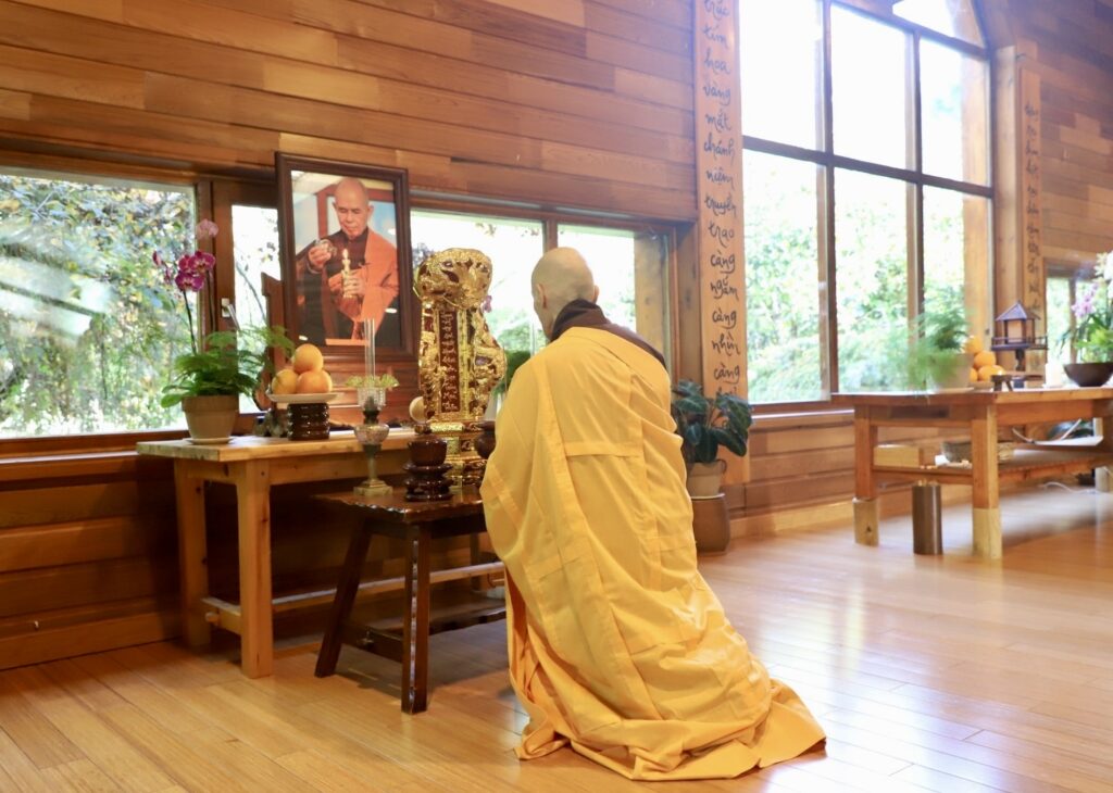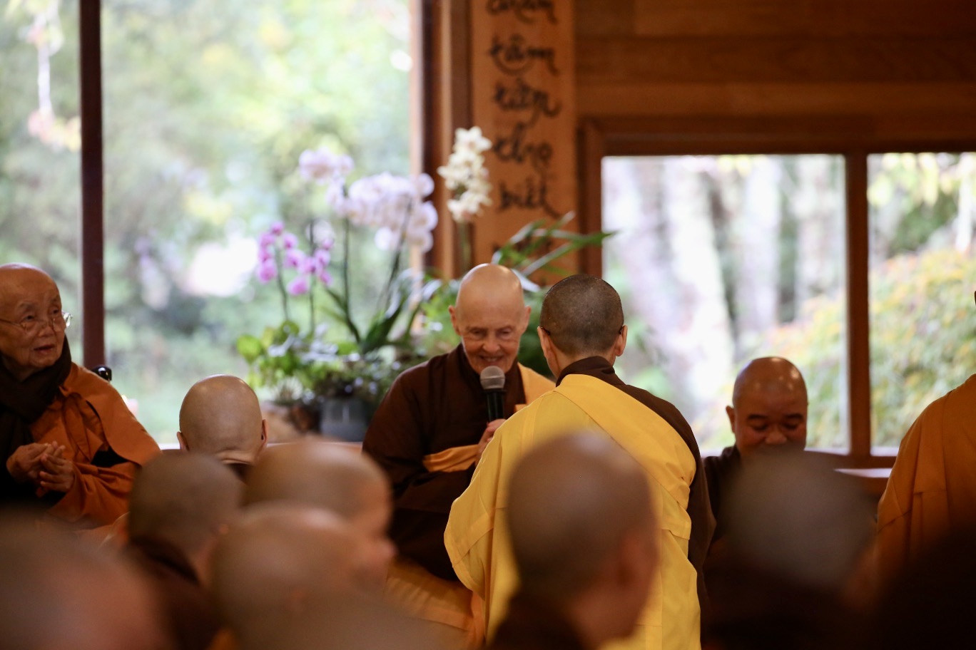 He called on the Sangha to renew this practice together, inspired by our elders such as Sister Chân Đức, so that Thay’s love and the energy of mindfulness can be truly felt in each step we take on Mother Earth. “This is a precious jewel,” he reminded. “If we need to renew it, please do it — 100%.”