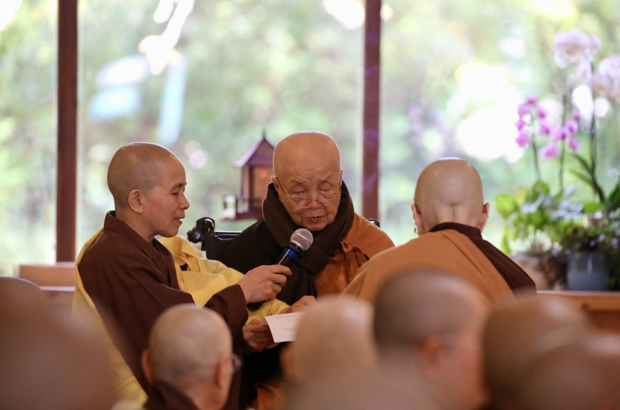 In the ceremony of Taking Refuge, Brother Pháp Ứng expressed deep gratitude to Thay, our ancestors, Mother Earth, and the Sangha for the precious continuation of this three-month tradition. He rejoiced that our elders are still with us and affirmed his confidence in the younger generation as the beautiful continuation of Thay’s vision and a refuge for many.