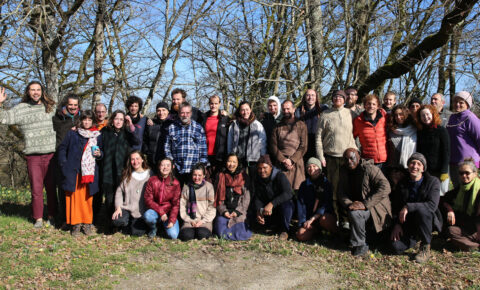 Against all expectations, the long-term lay practitionersLay people, long-terms: Plum Village monastery in France, is the home of ordained Buddhist monks and nuns, living in separate hamlets. It is possible as a lay practitioner to come and live and practice mindfulness at the monastery for an extended period. These lay residents are called ‘long-terms’. For more information click here https://plumvillage.org/community/extended-stay/ of the three hamlets at Plum Village managed to organise their own retreat in 2021. From 16 to 23 March 2021, 27 practitioners resident in Plum Village had an unforgettable week of practice together. This year, it was at the intimate Son Ha monastery (“the foot of the mountain”) which welcomed them with open arms.