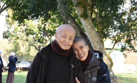 Sr Dang Nghiem (also known as “Sister D”) is a trauma survivor, a certified MD and a monastic Dharma teacher in the Plum Village tradition. She left her medical career to ordain as a nun, under our teacher Thich Nhat Hanh, in Plum Village, in 2000. She currently lives in Deer Park Monastery.