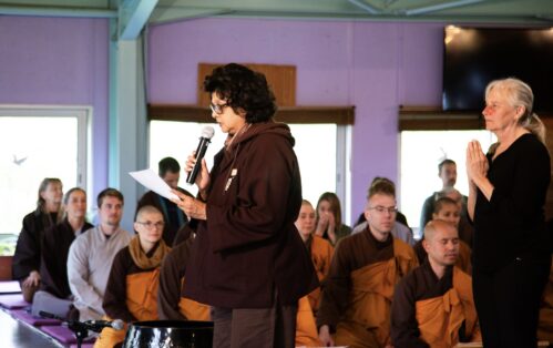 With deep gratitude to the Buddha, our spiritual ancestors, and our beloved community, we convened to transmit and receive the 14 Mindfulness Trainings and the Dharma Lamp Transmission in a spirit of joy, peace, and harmony.