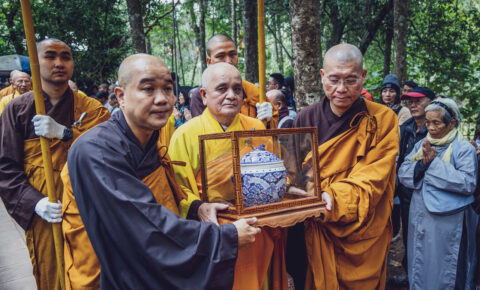 The Ceremony of Transformation to Ancestor marks the end of the International Plum Village Community’s two-year mourning period, known as Đại Tường in Vietnamese (大祥 in Chinese). And it recognizes Thay as the fifth patriarch of Từ Hiếu Temple – his root temple – and the founder of the Plum Village Sangha.