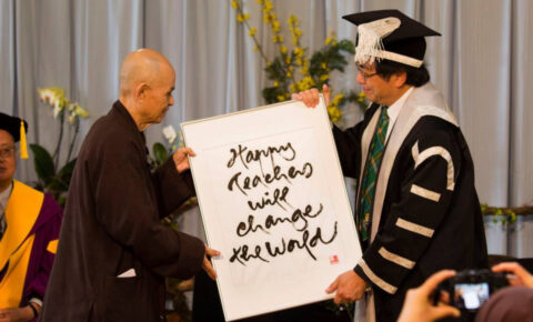 In our community, we practice The Five Mindfulness Trainings – reverence for life, true happiness, true love, true communication, and mindful consumption – which can serve as our global ethics. You can learn more about them on our website. Everyone can practice them in order to ensure the happiness of the individual, the family, the society, and the earth.