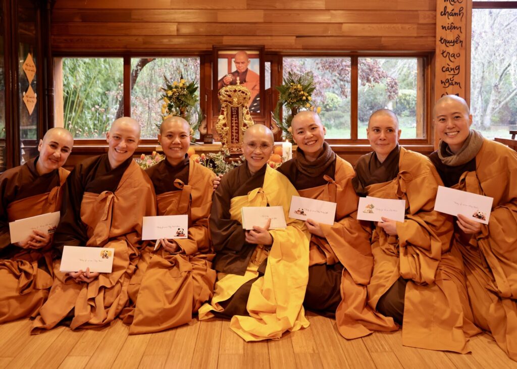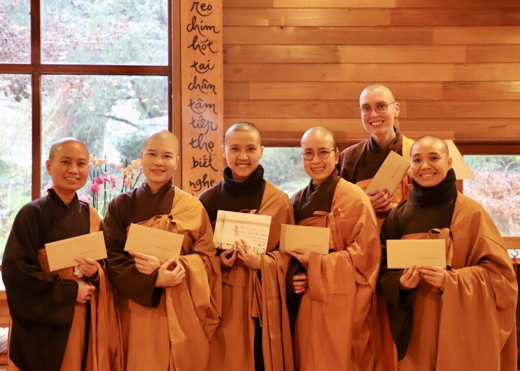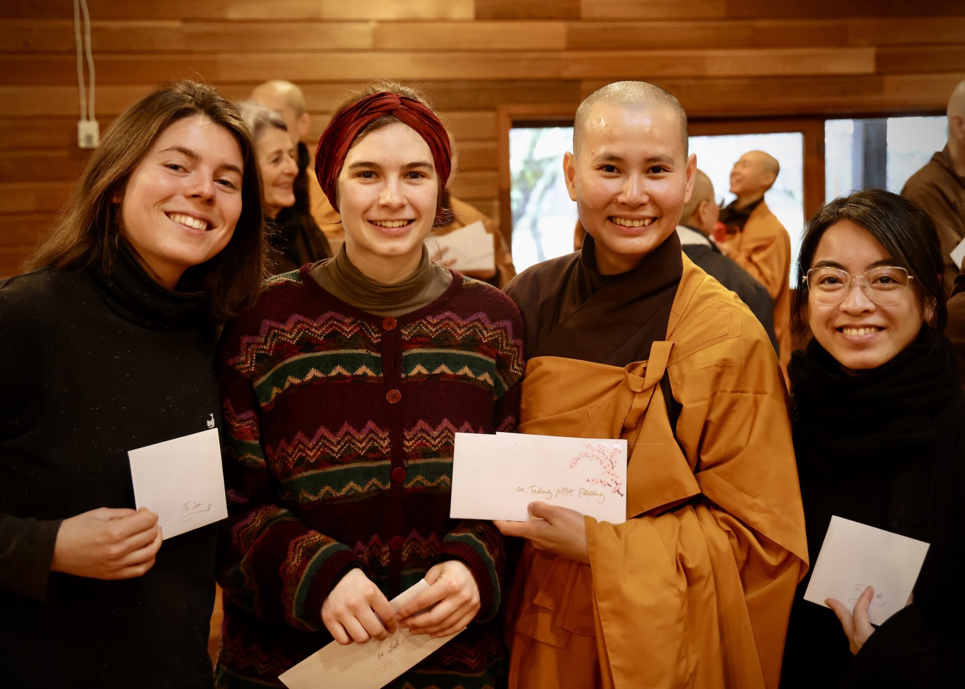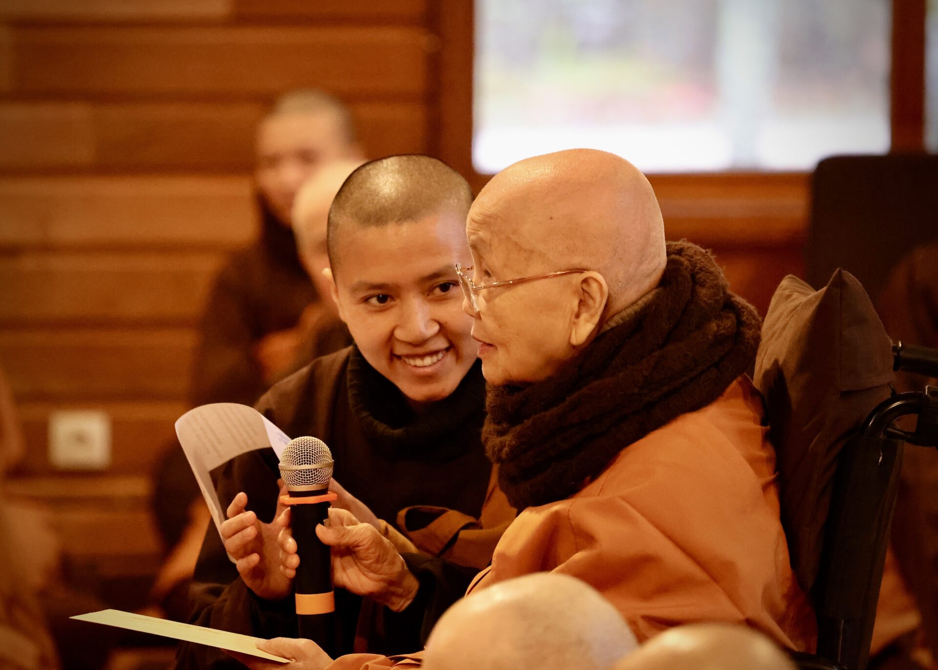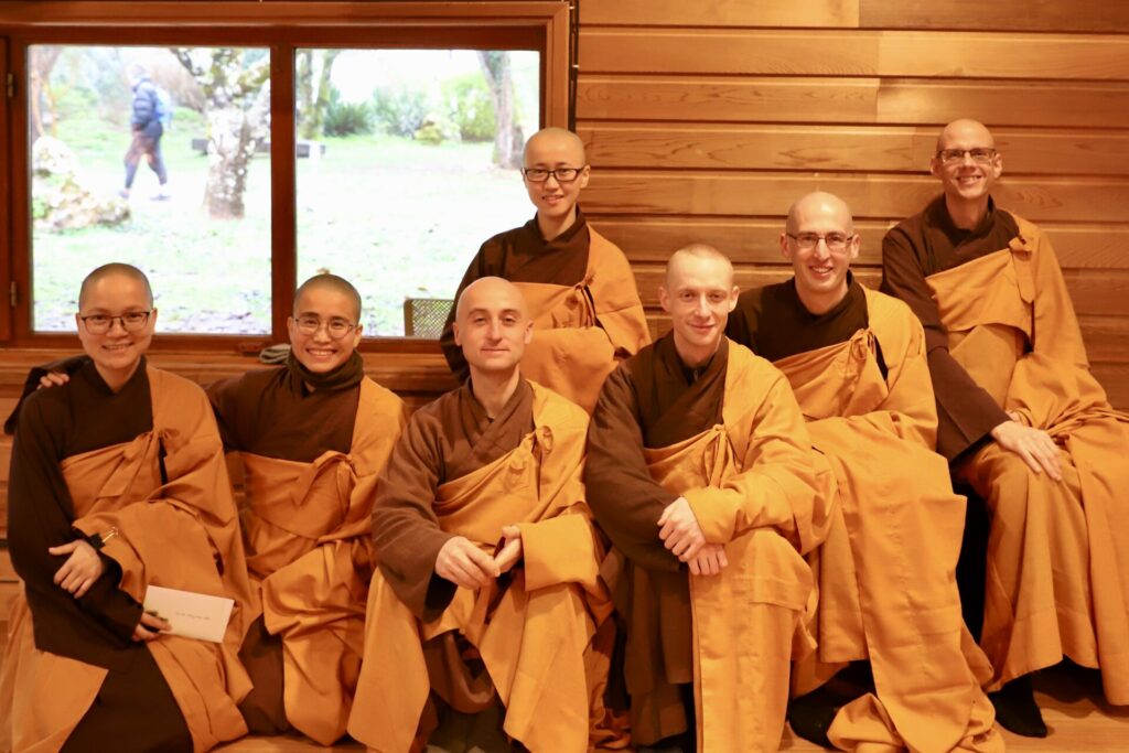 Plum Village is unique in that we also invite longterm and short-term lay practitioners to join the 90-day retreat and practice alongside our monastic community. Additionally we focus on nurturing and building our monastic sangha, by nourishing our monastic siblinghood and inspiring others to walk the monastic path with us.