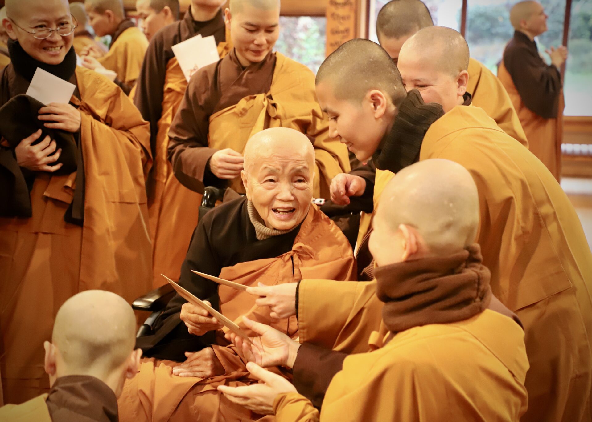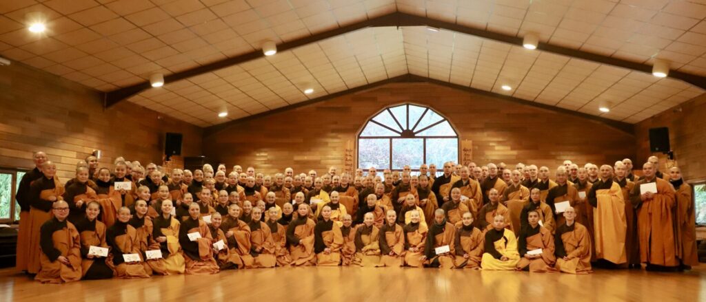 The Rains Retreat Closing Ceremony, also referred to as the Ceremony of Invitation, celebrates our enriching community of monastic and lay practitioners. It is a joyous moment in which we express gratitude to one another, especially to our Elders in our sangha, who support us on our path with their steadfast practice, loving guidance, and unwavering commitment.