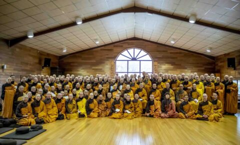 After a formal lunch, our aspirants come up before the Sangha to formally request to be ordained as novices. They each offer a rose to our teacher and the community as a symbol of their aspiration and commitment before formally asking the community to receive the novice precepts.
