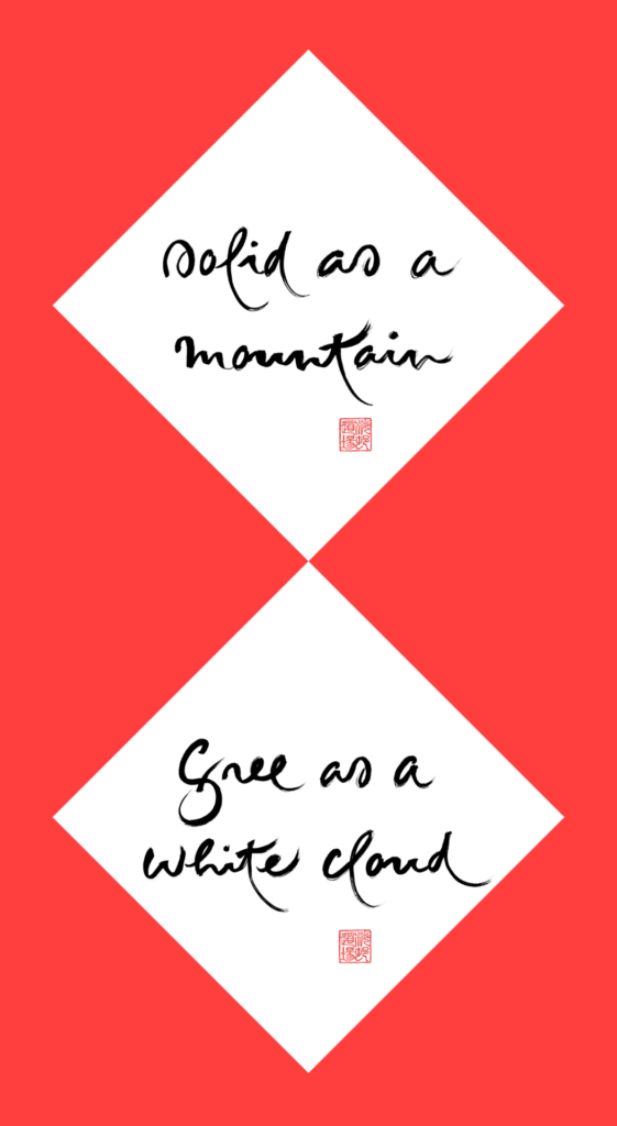 While reciting these phrases we can combine each line with our breathing. For example, we can contemplate “Solid as a mountain” as we breathe in, and contemplate “Free as a white cloud” as we breathe out. These words are not a declaration, but a living aspiration that we wish to nurture.