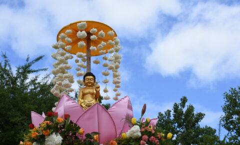 On May 11th, the multifold community at Plum Village, France, gathered in the Lower Hamlet to celebrate Vesak—commemorating the birth, enlightenment, and passing (parinirvana) of Shakyamuni Buddha.