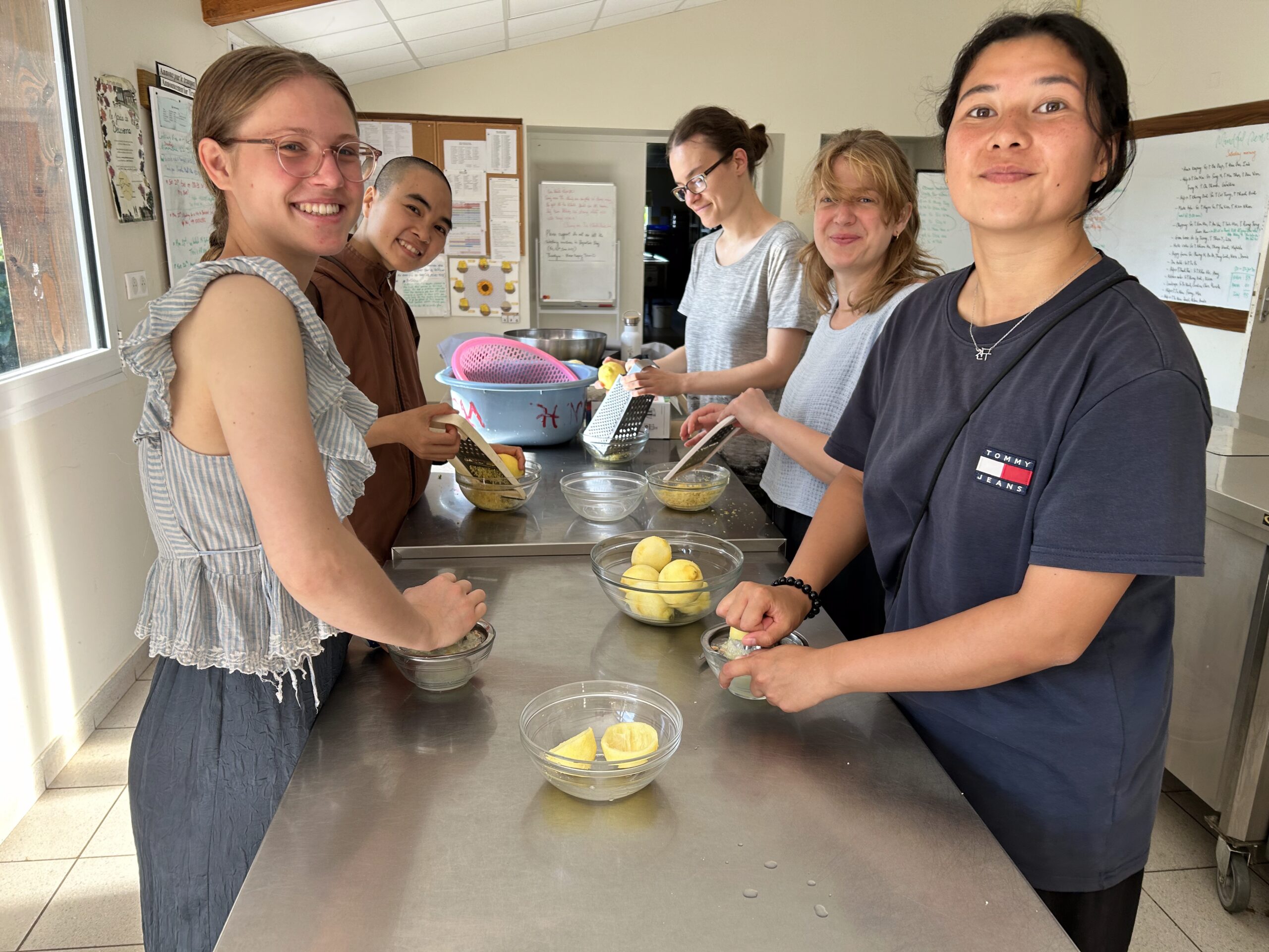 Volunteering for Plum village has been a life-changing experience for me. It’s a unique way to learn the practice of mindfulness. You get the chance to work with some really lovely volunteers and monastics to help to run the retreats, and there’s plenty of opportunity to join in the retreat activities too. It’s a nourishing experience with both challenging and joyful moments, and plenty of knowledge to come home with. — Claire; Wicklow, Ireland