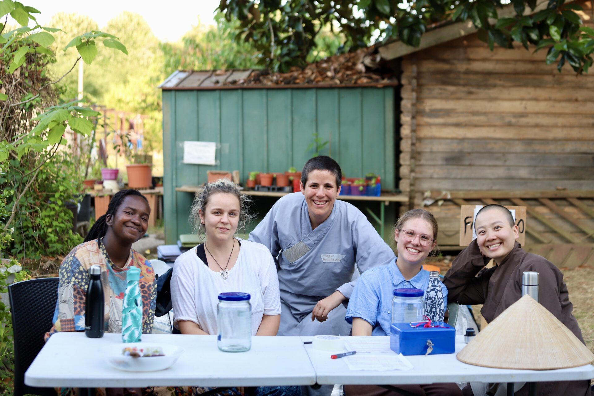 When we come to Plum Village on retreat, we often feel so much transformation and healing through the different practices, teachings, and the beloved community. Usually our hearts feel so full, that there is a natural overflowing of love and gratitude. This often motivates us to want to become involved in order to extend this gift of well-being and happiness to others.