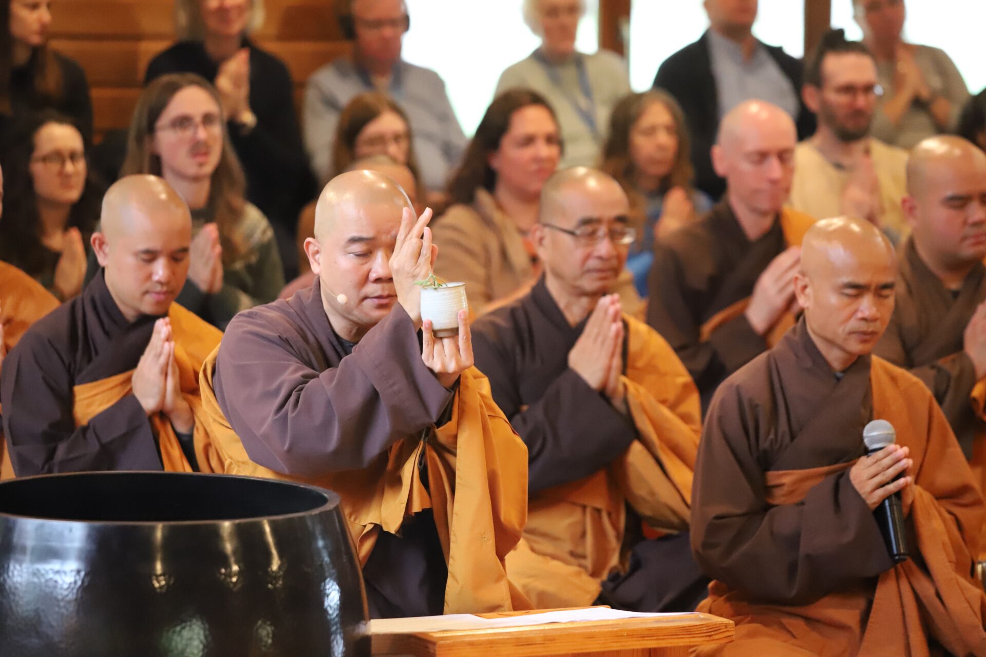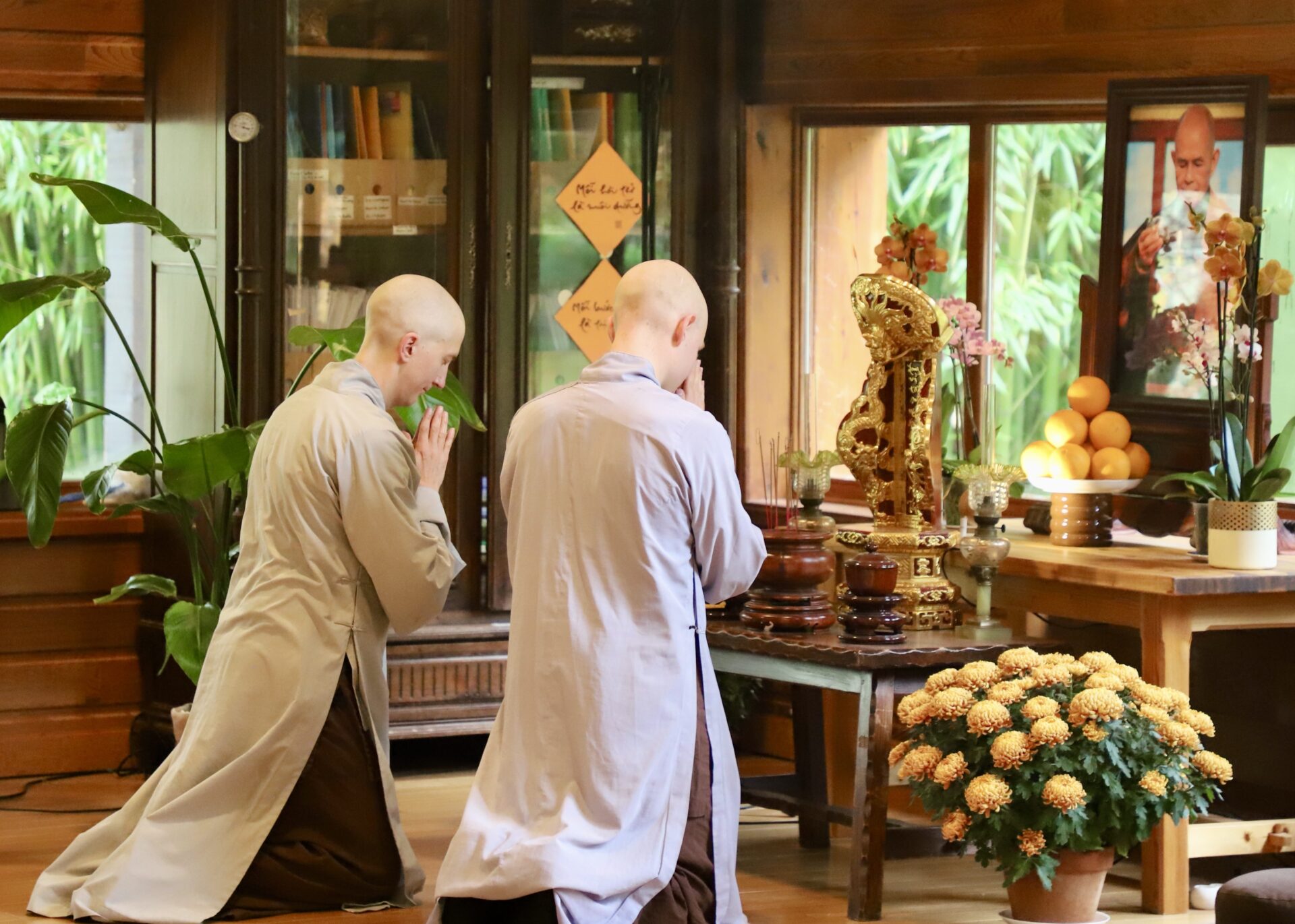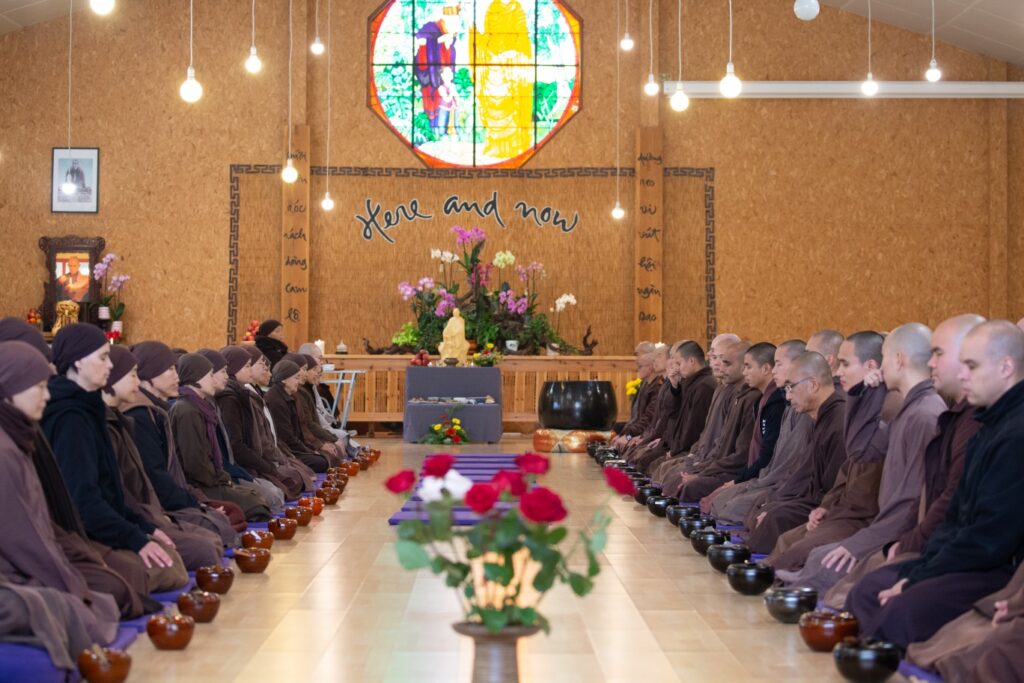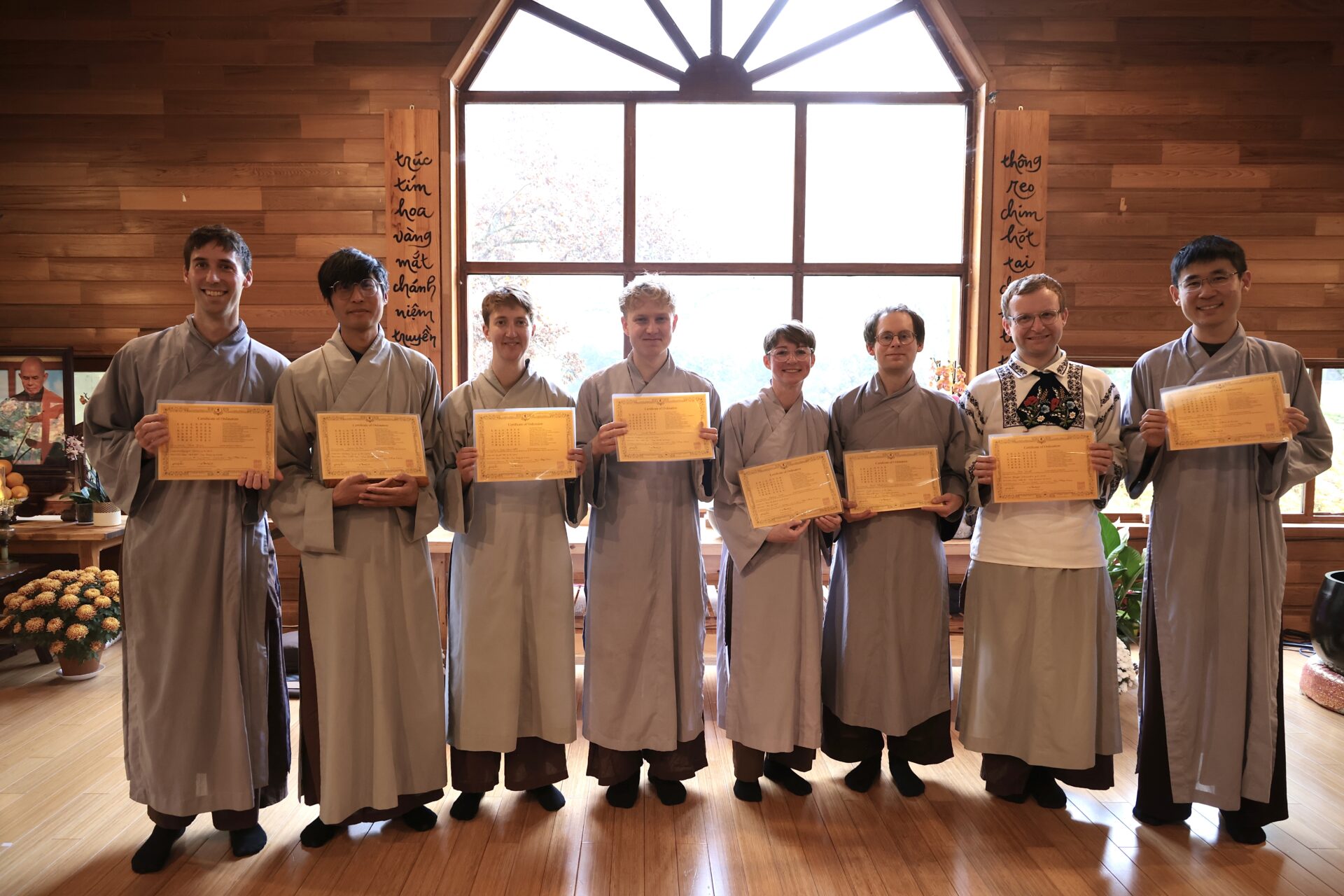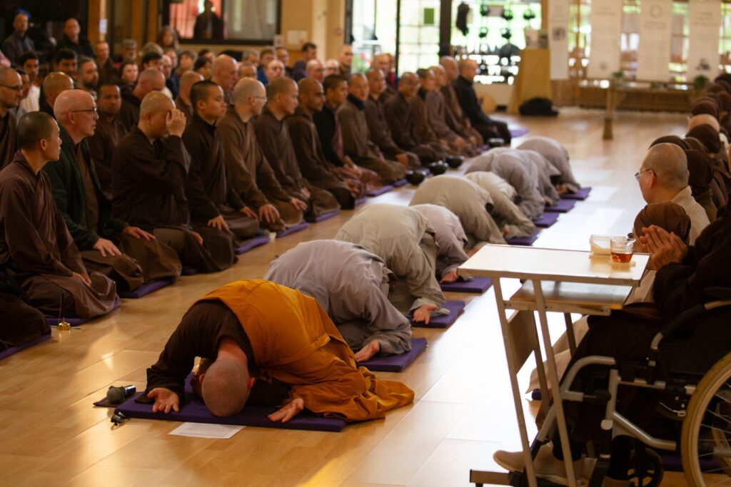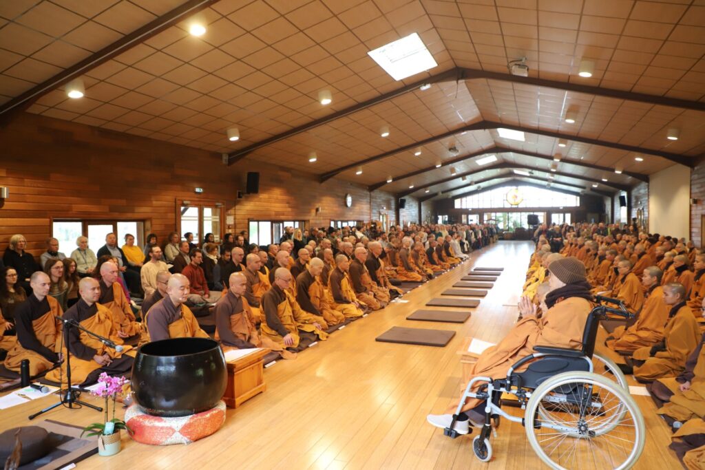 On 9 November in the Still Water Meditation Hall of the Dharma Cloud Temple (Plum Village, France), a group of eight young people shed their hair to become novice monks and nuns, as witnessed by their families, friends, and the entire Plum Village community. Coming from many different countries (Australia, Sweden, France, Taiwan, China, and Germany), they have committed themselves to embark on this path of healing, transformation and service in order to fulfill their deepest aspirations.