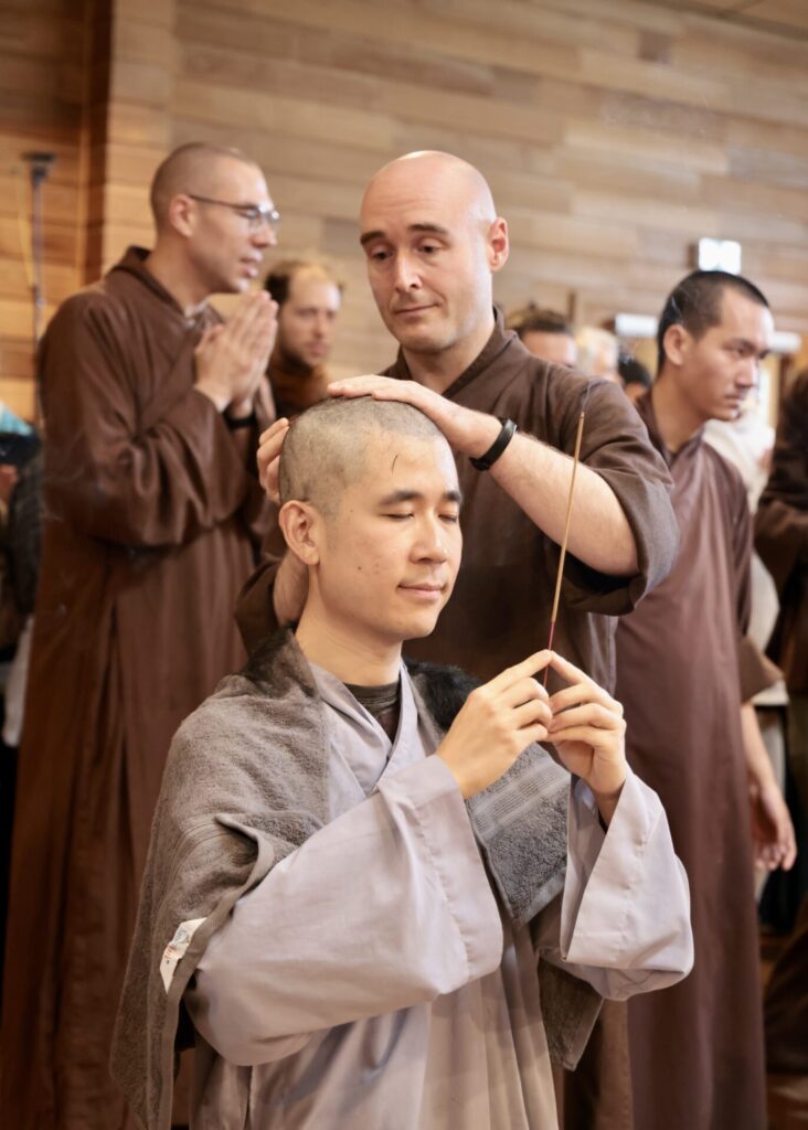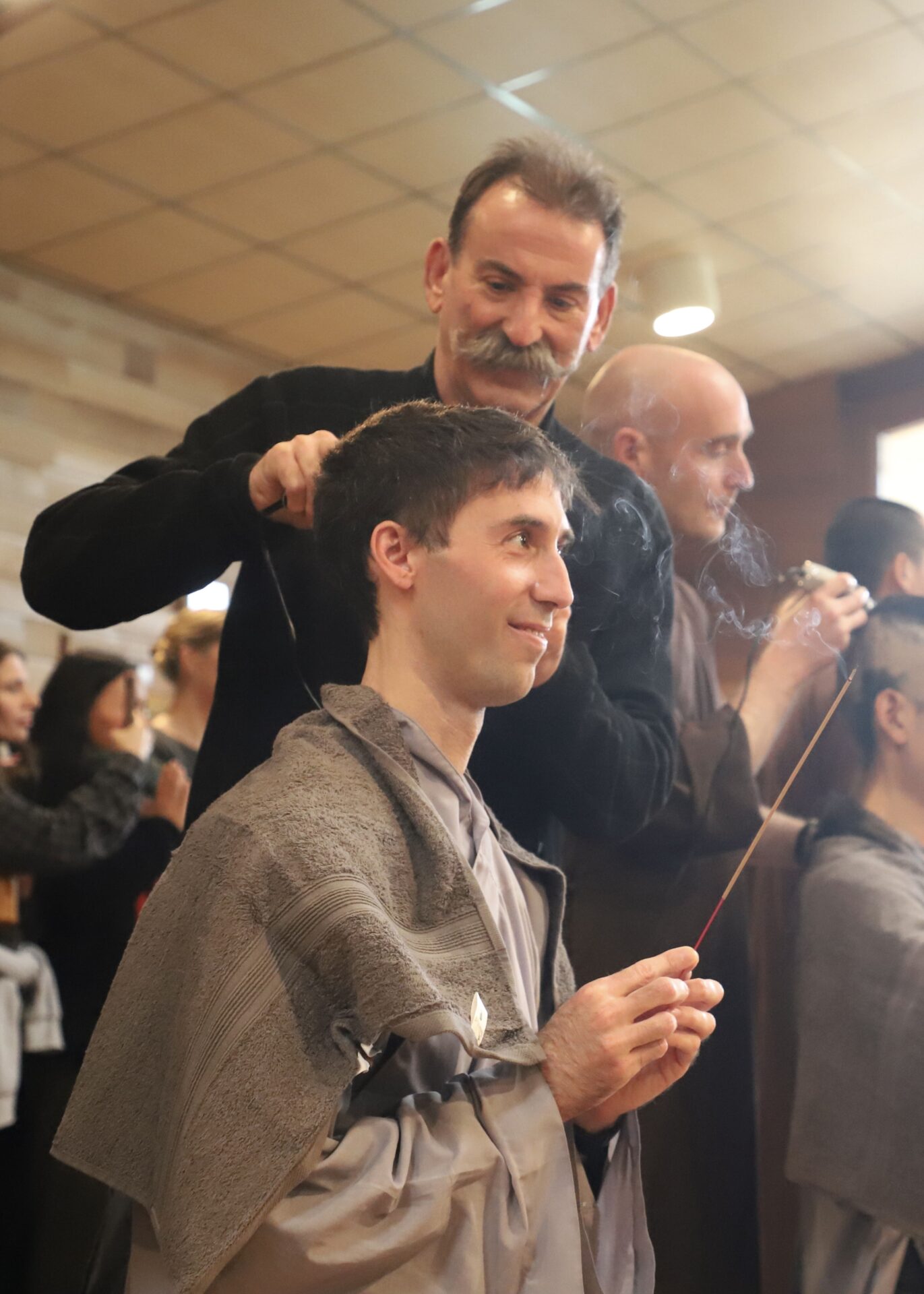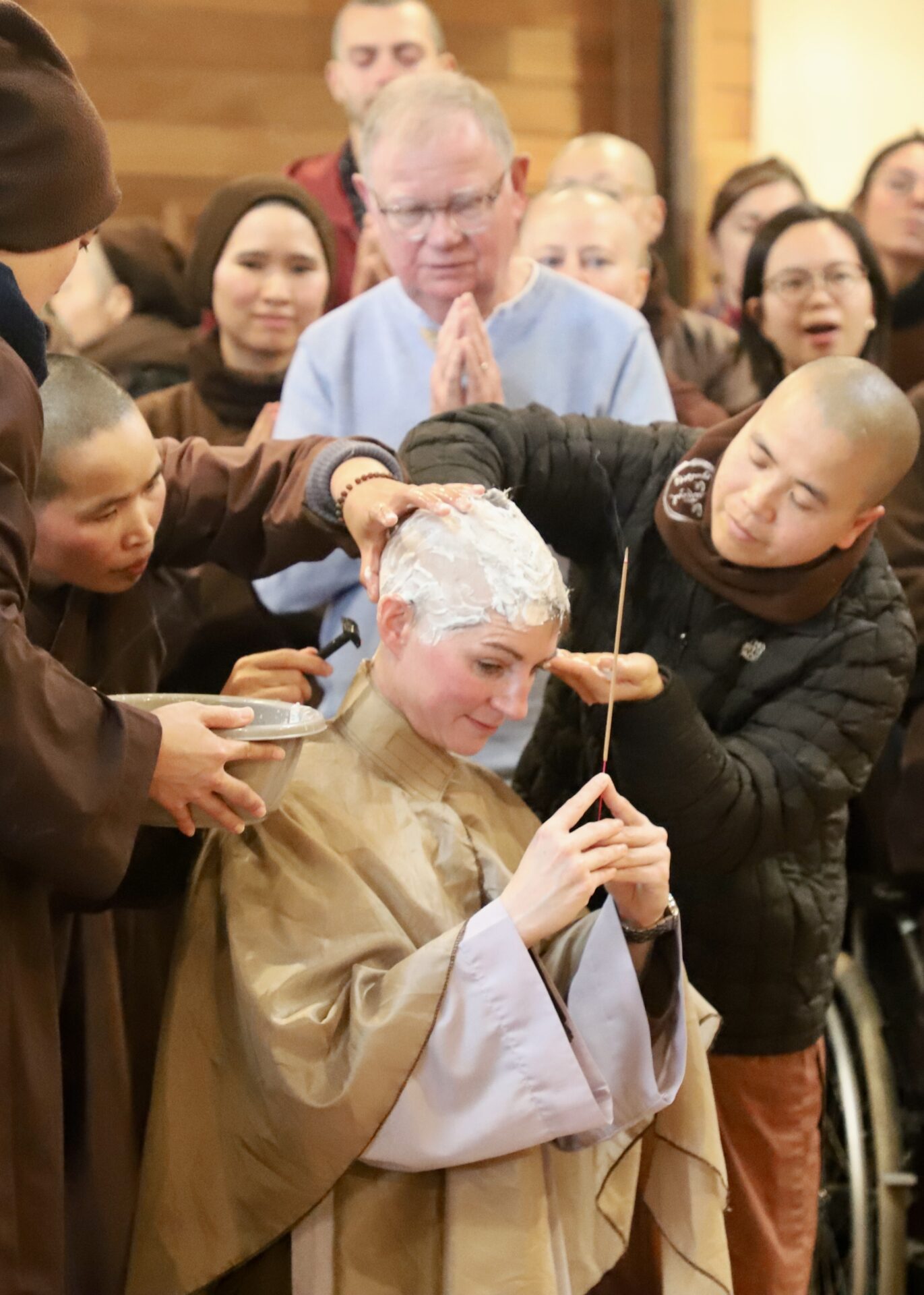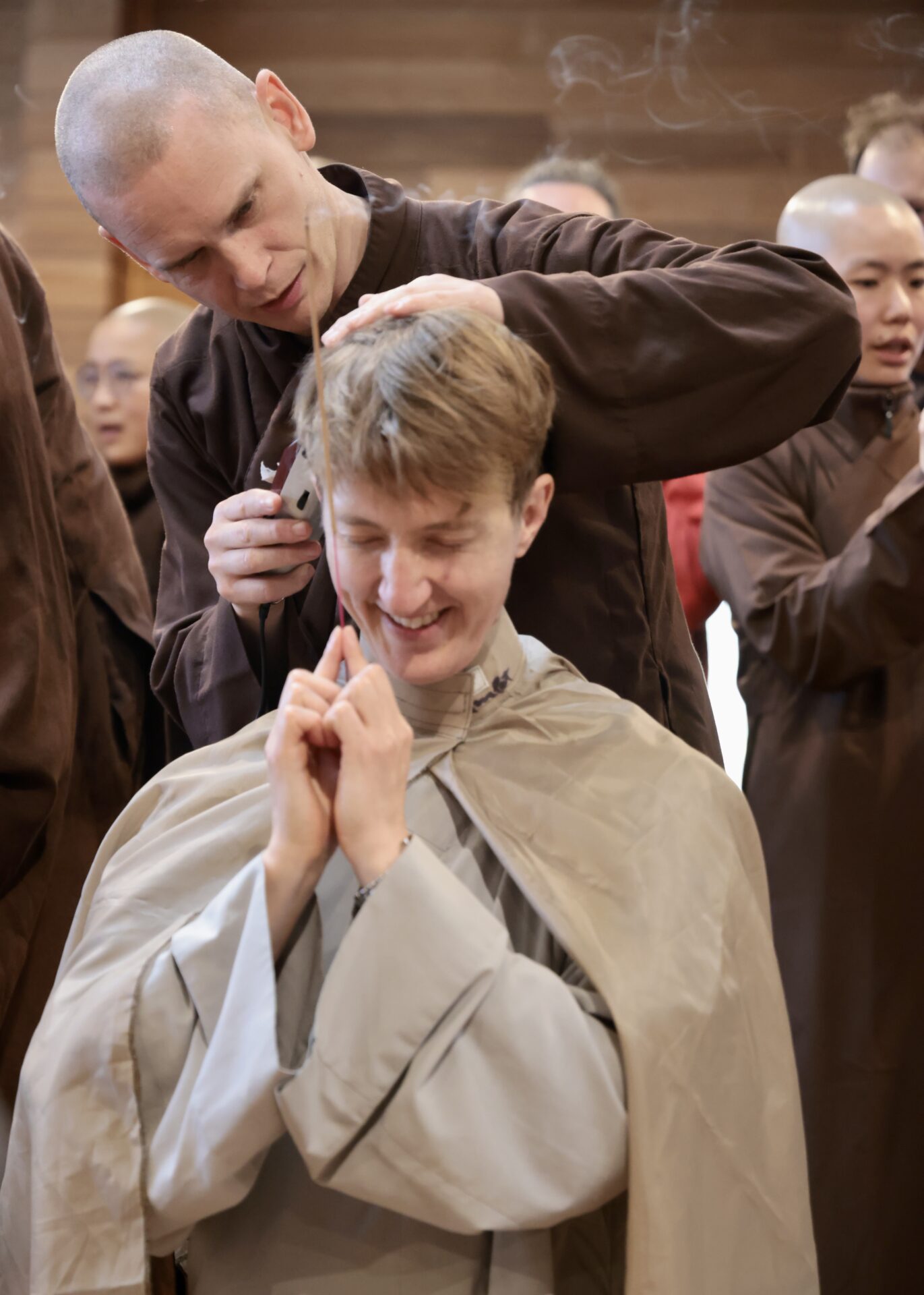 What struck me the most was the togetherness of the ceremony. I really felt that I’m in the center of a community and I feel so fortunate that I found the sangha jewel. I felt that the whole sangha – monastic and lay – was so happy to see us shave our hair. I cannot describe it. It is like nothing that I have ever experienced before. I really feel very, very connected and lifted by everyone’s happiness.