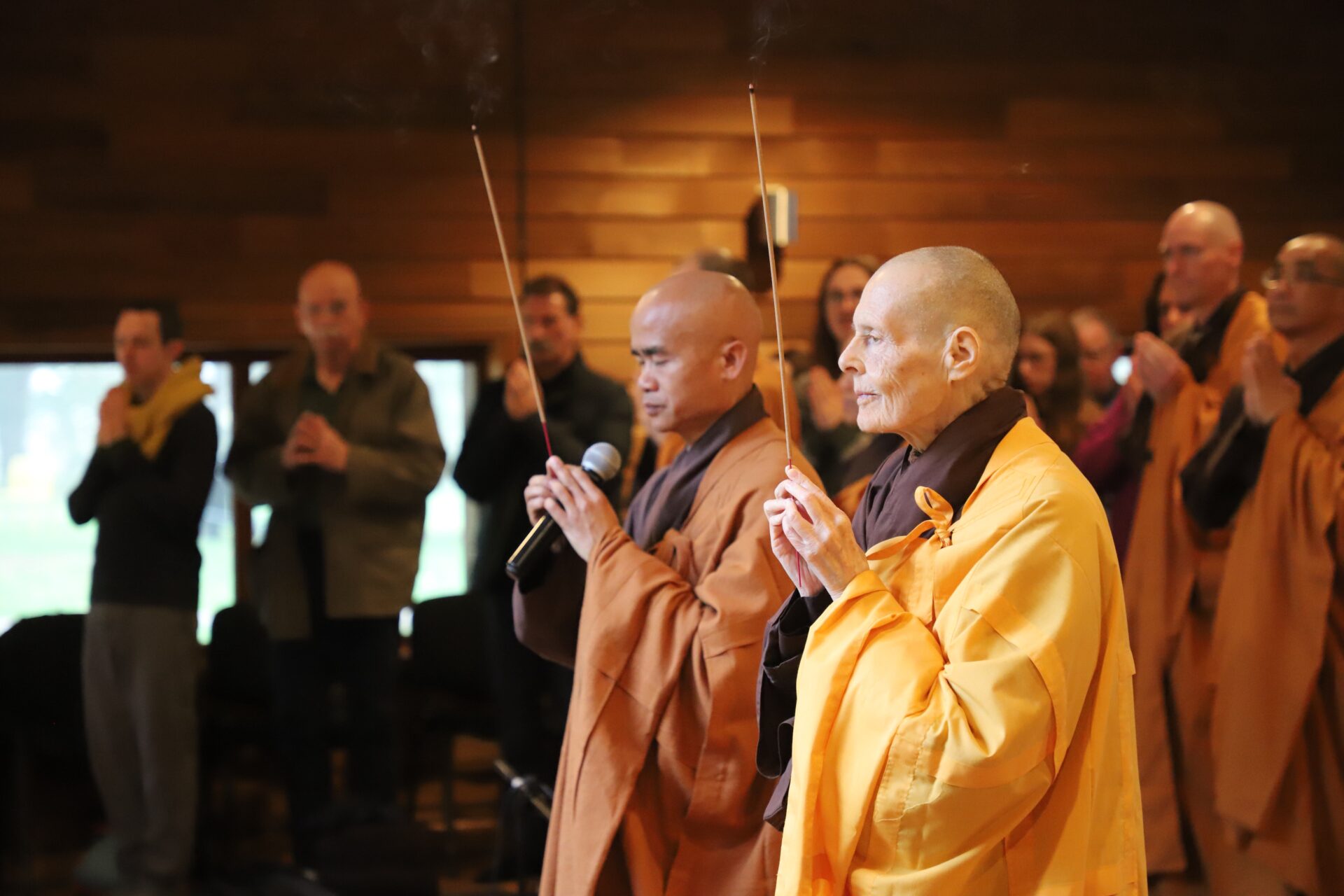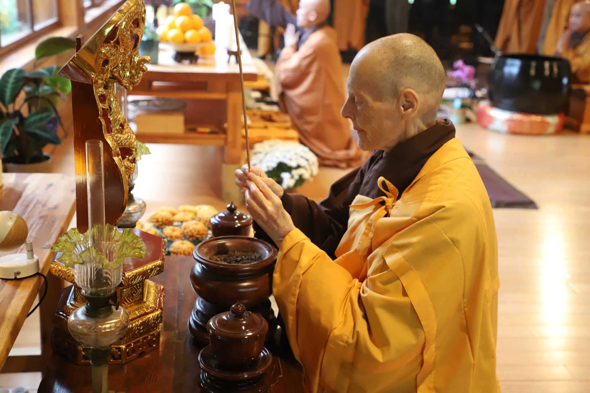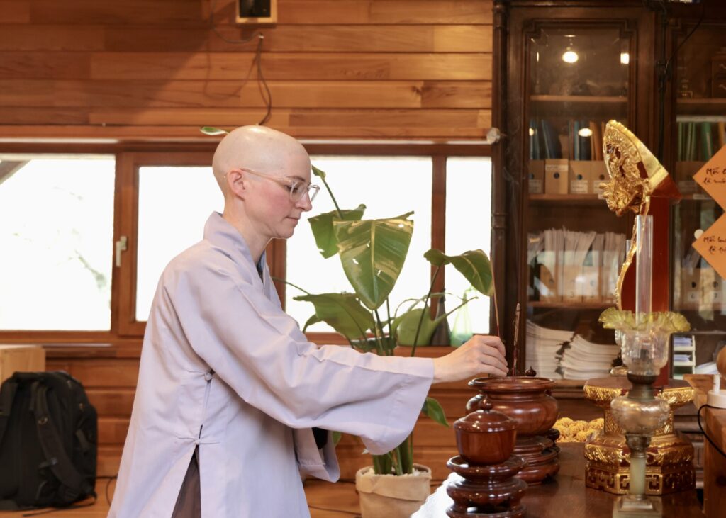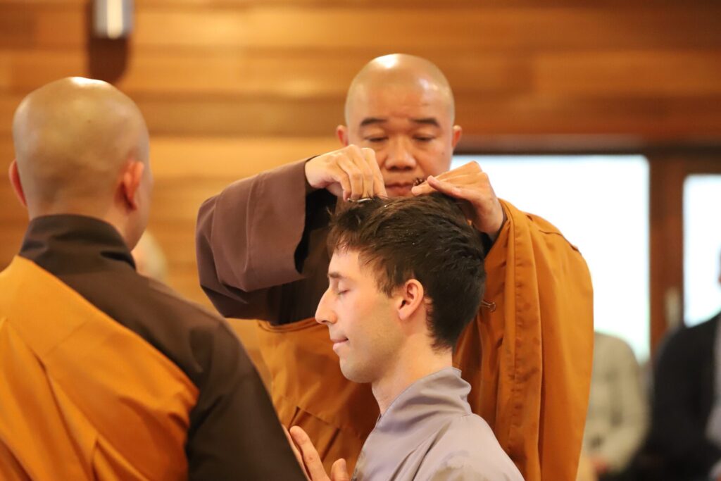 What struck me the most was the togetherness of the ceremony. I really felt that I’m in the center of a community and I feel so fortunate that I found the sangha jewel. I felt that the whole sangha – monastic and lay – was so happy to see us shave our hair. I cannot describe it. It is like nothing that I have ever experienced before. I really feel very, very connected and lifted by everyone’s happiness.