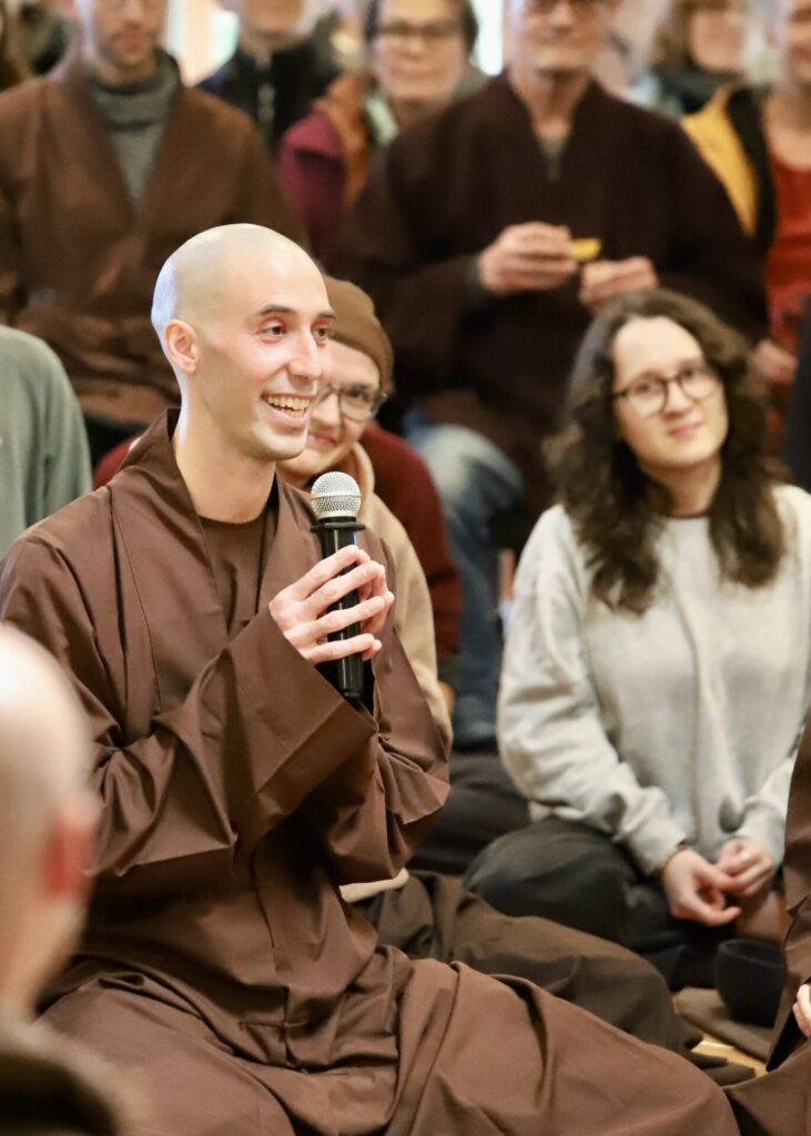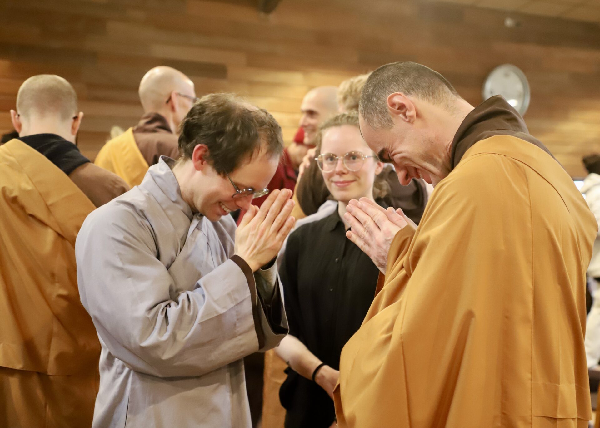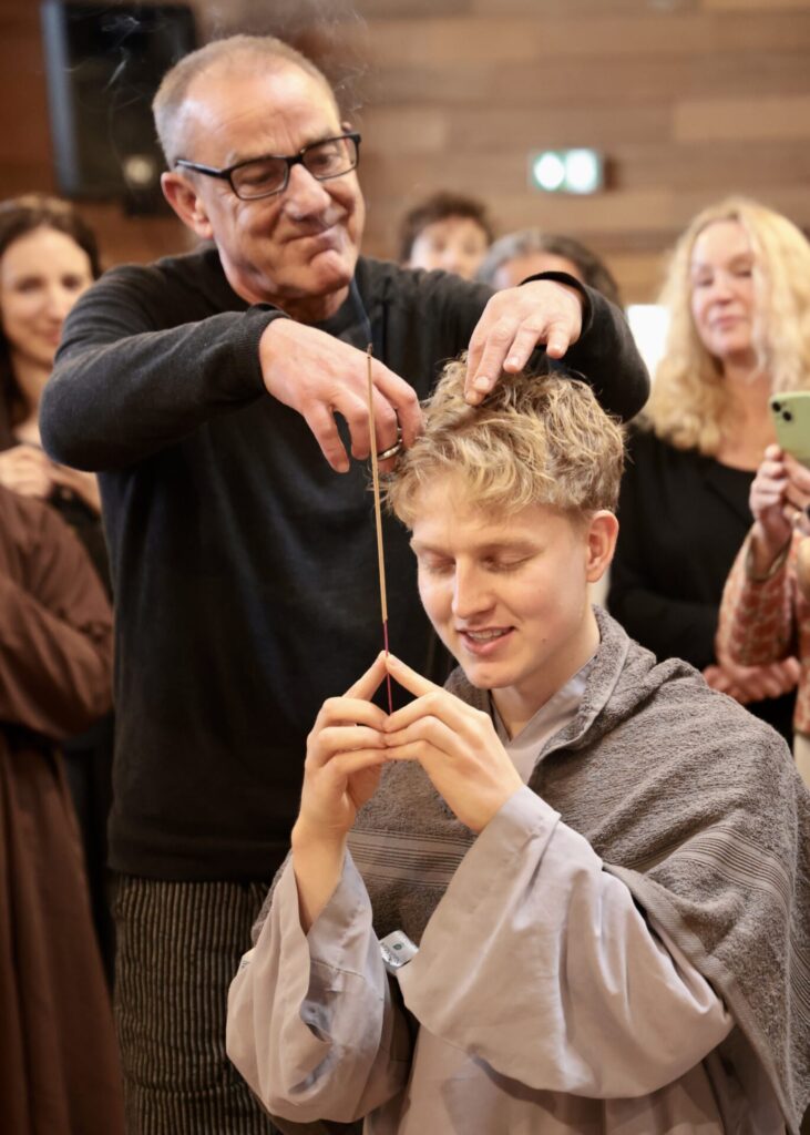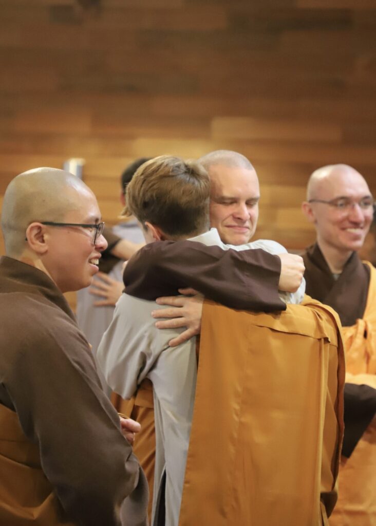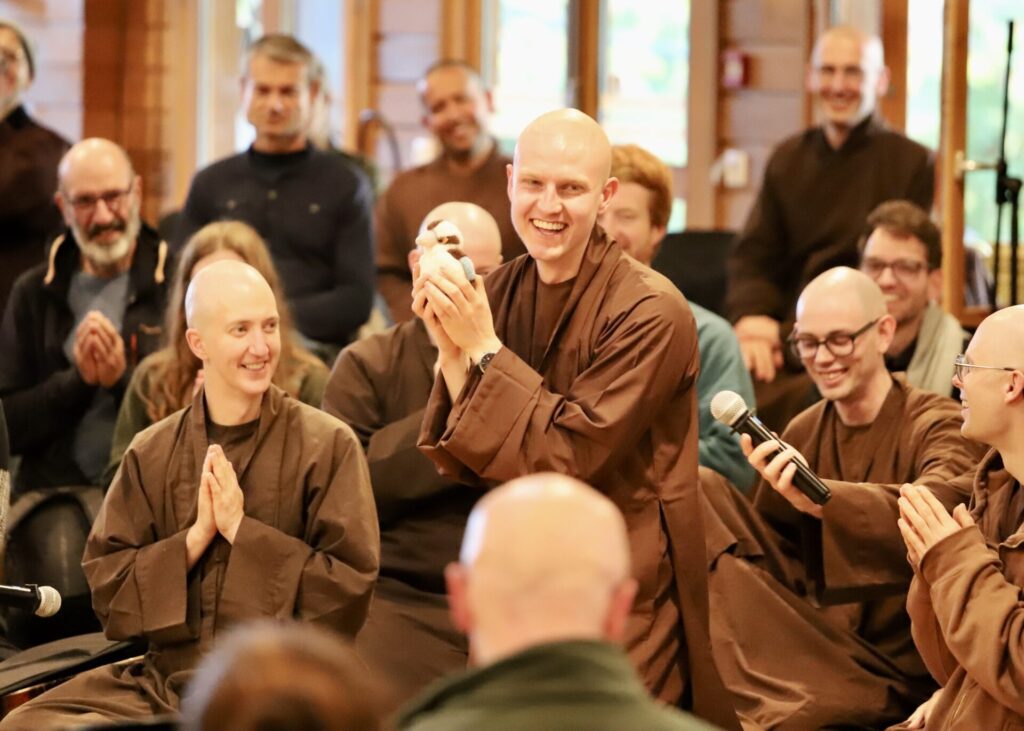 We’re quite amazed by your path. We’re very proud to be here and to be able to stay with you. It was very beautiful and moving and there was a lot of love in this hall and we could feel it. We feel that this decision to become a monk is an enrichment for all of our lives and we are very grateful for that. May your heart always be filled with love and your path be blessed.