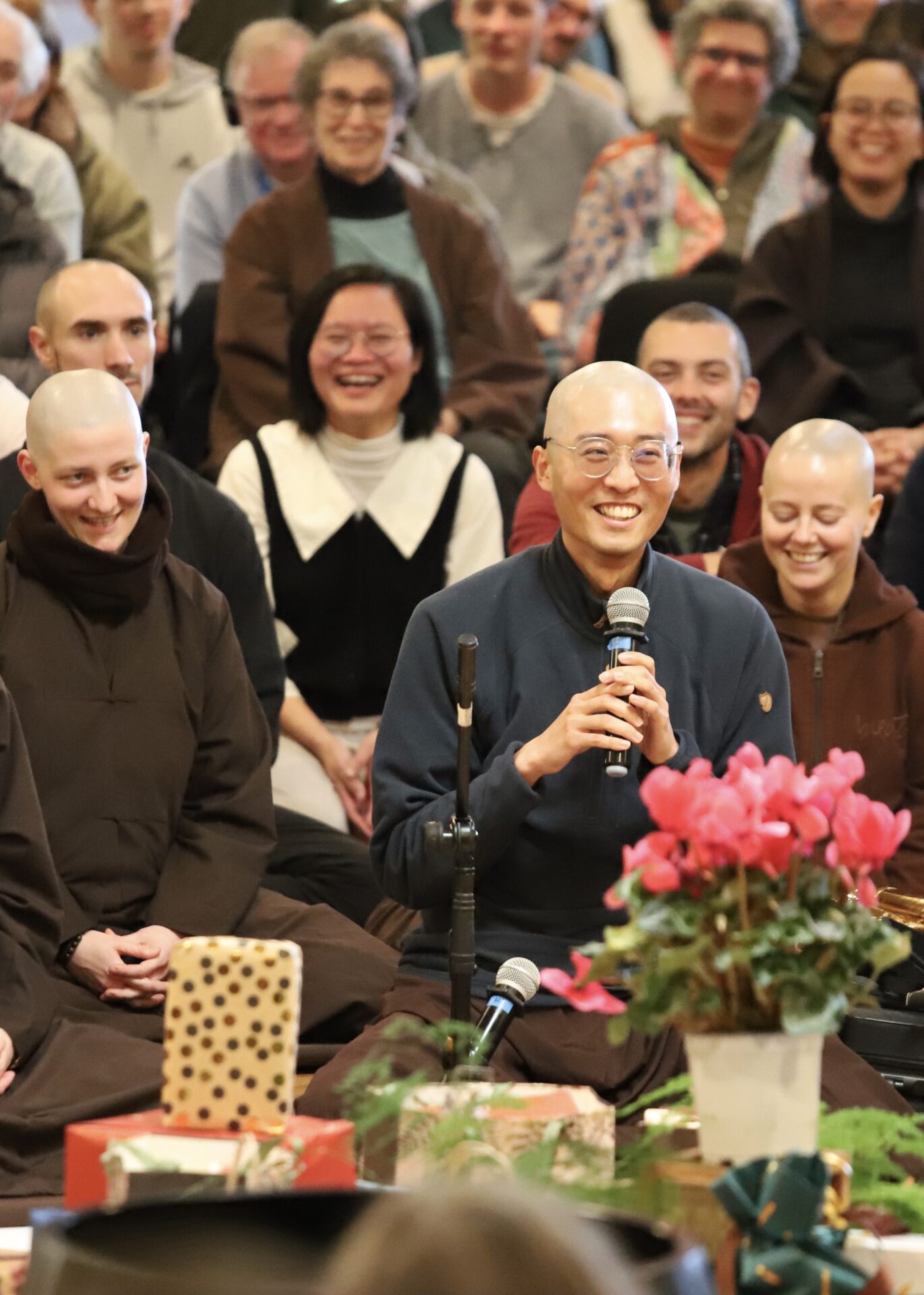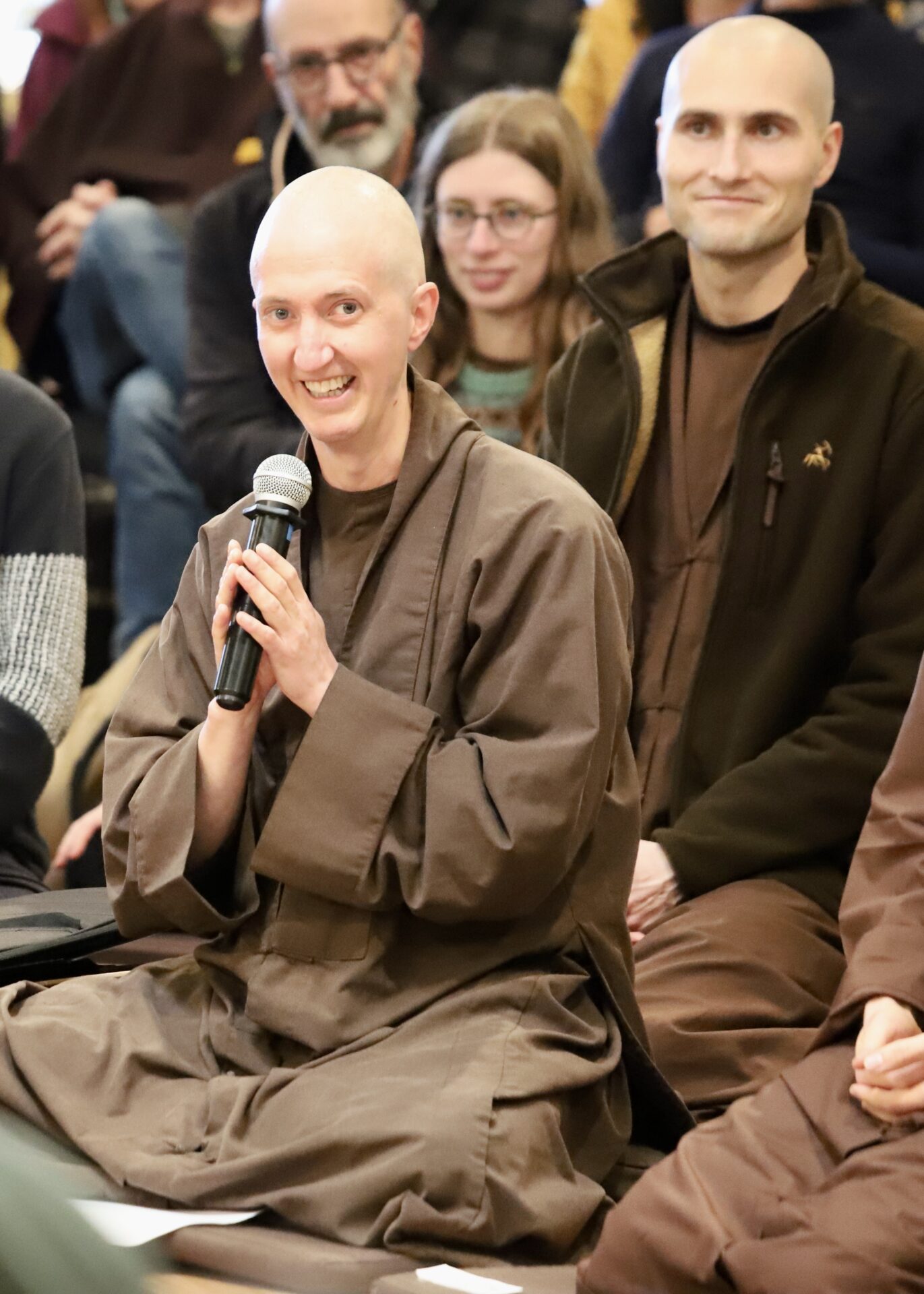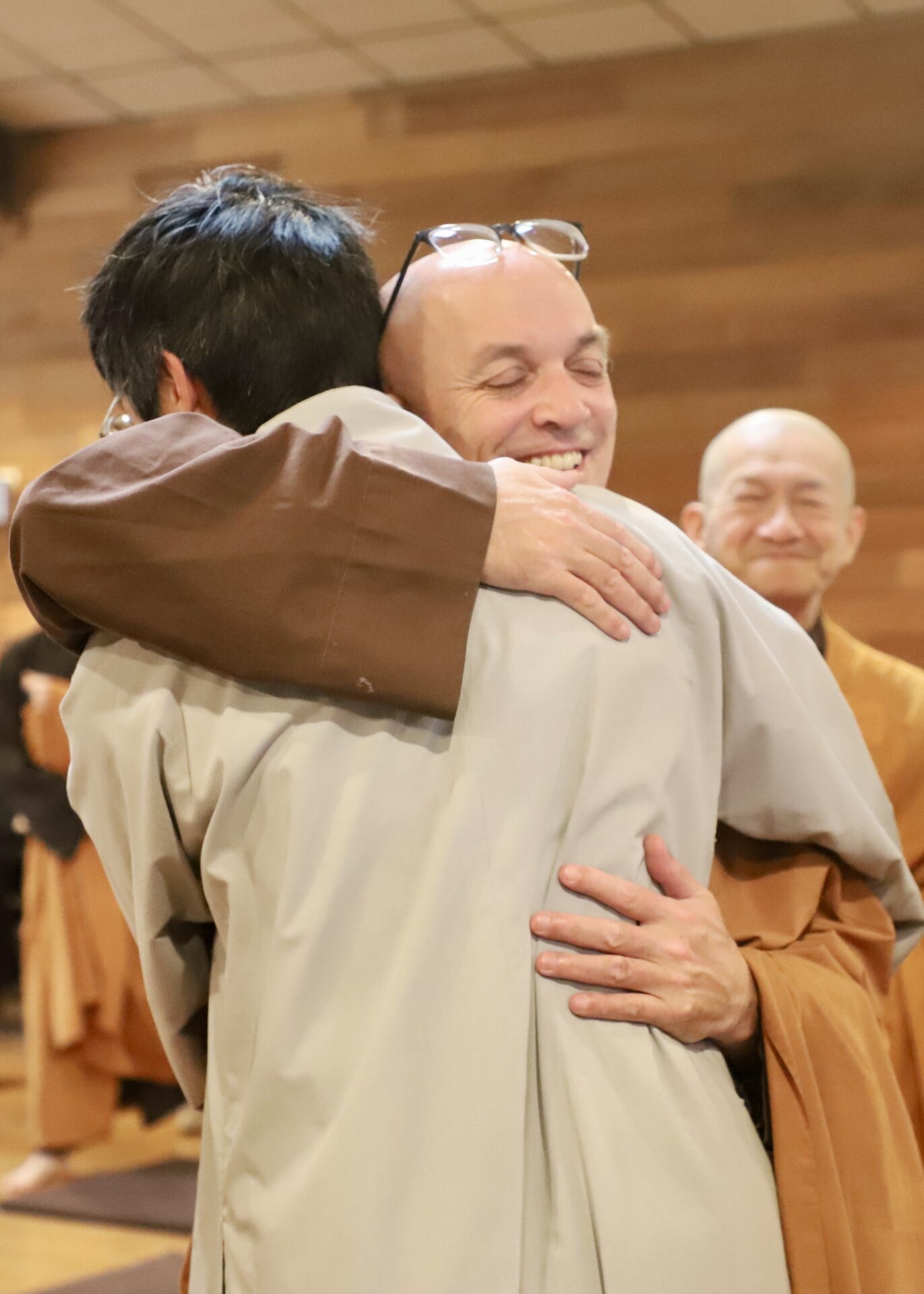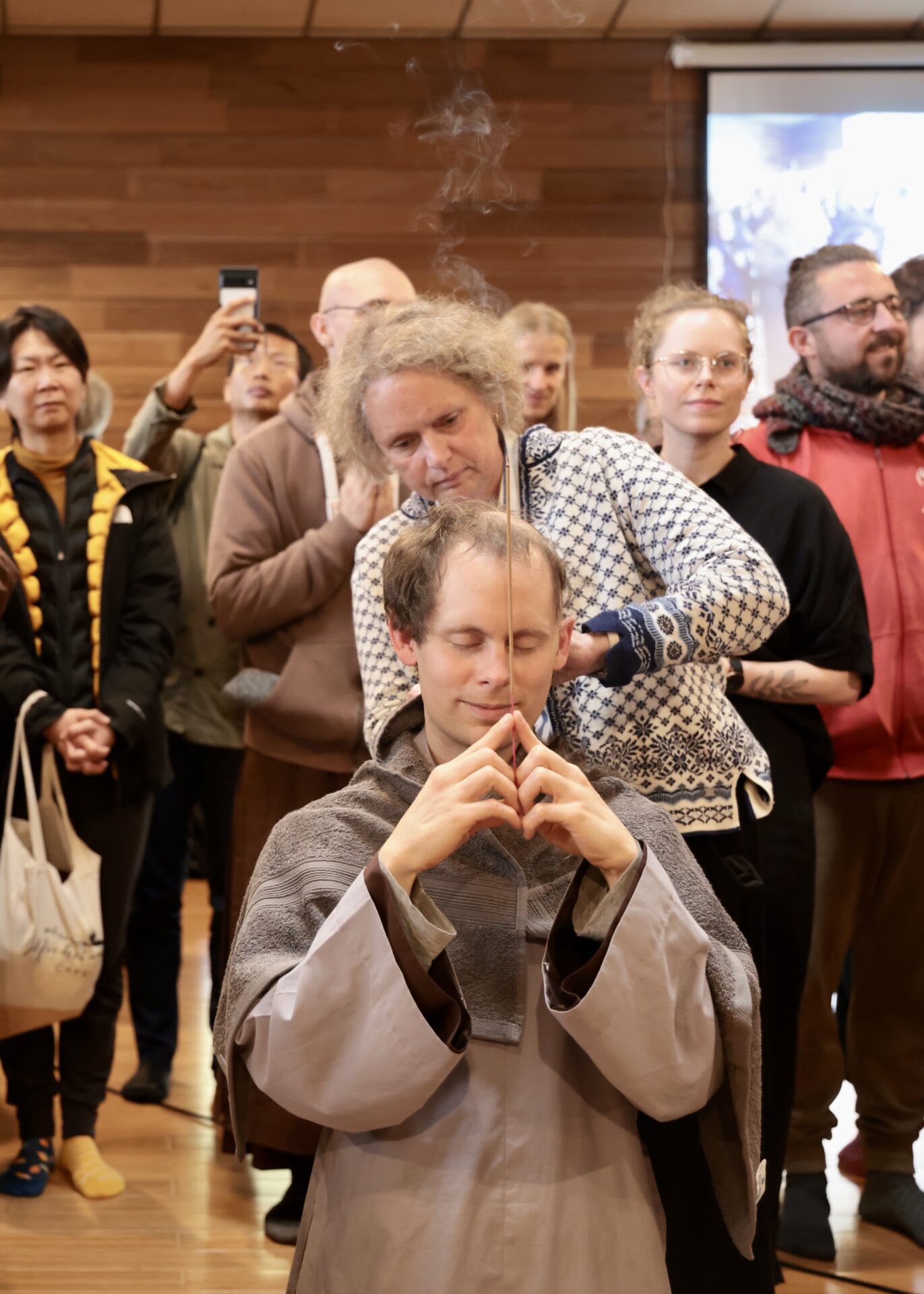 We’re quite amazed by your path. We’re very proud to be here and to be able to stay with you. It was very beautiful and moving and there was a lot of love in this hall and we could feel it. We feel that this decision to become a monk is an enrichment for all of our lives and we are very grateful for that. May your heart always be filled with love and your path be blessed.