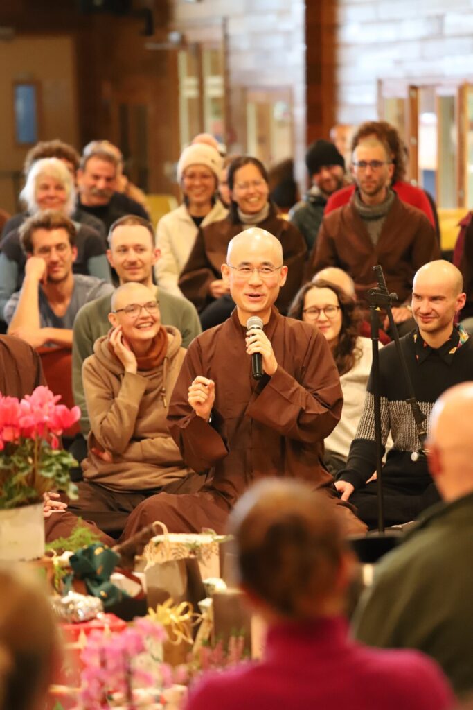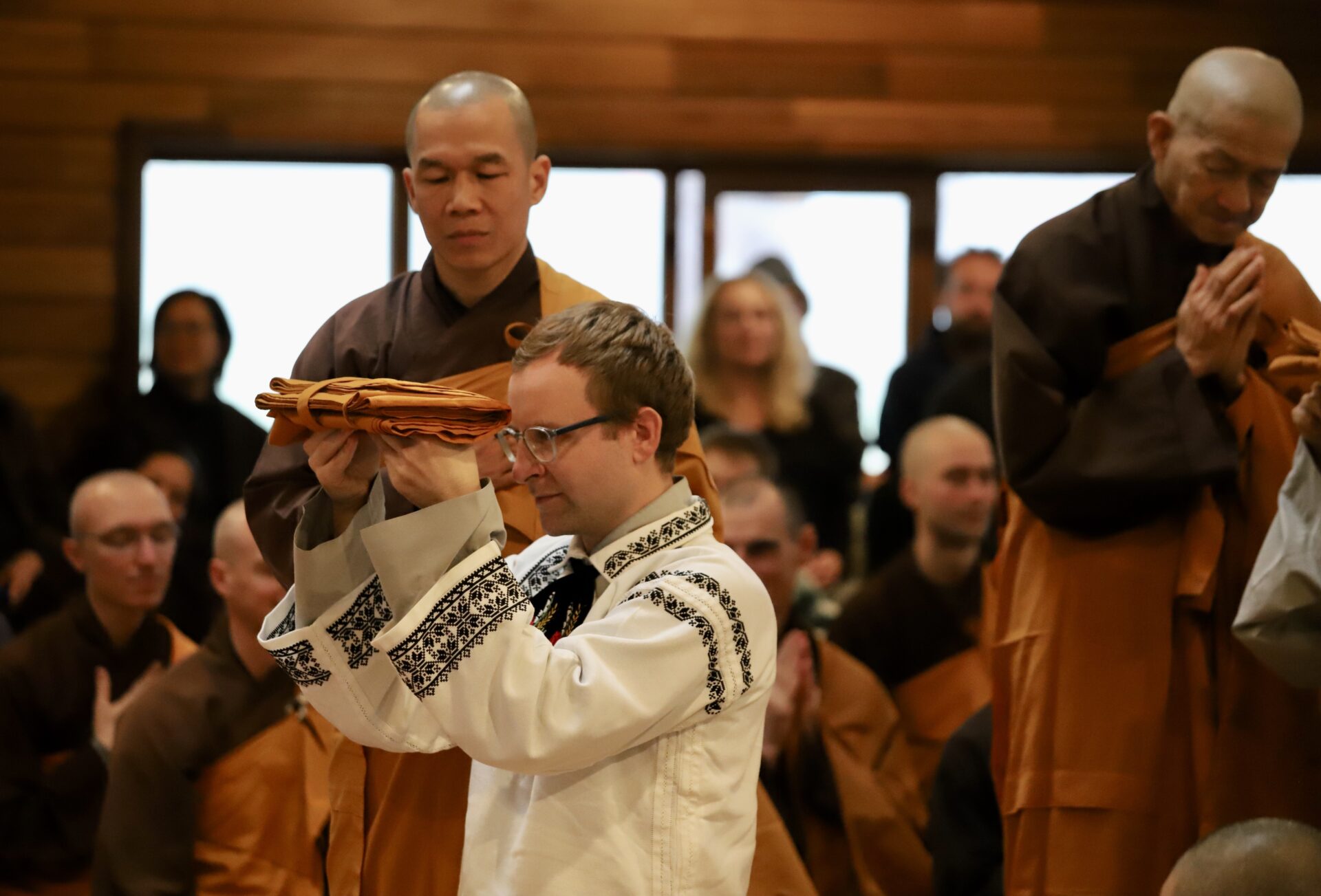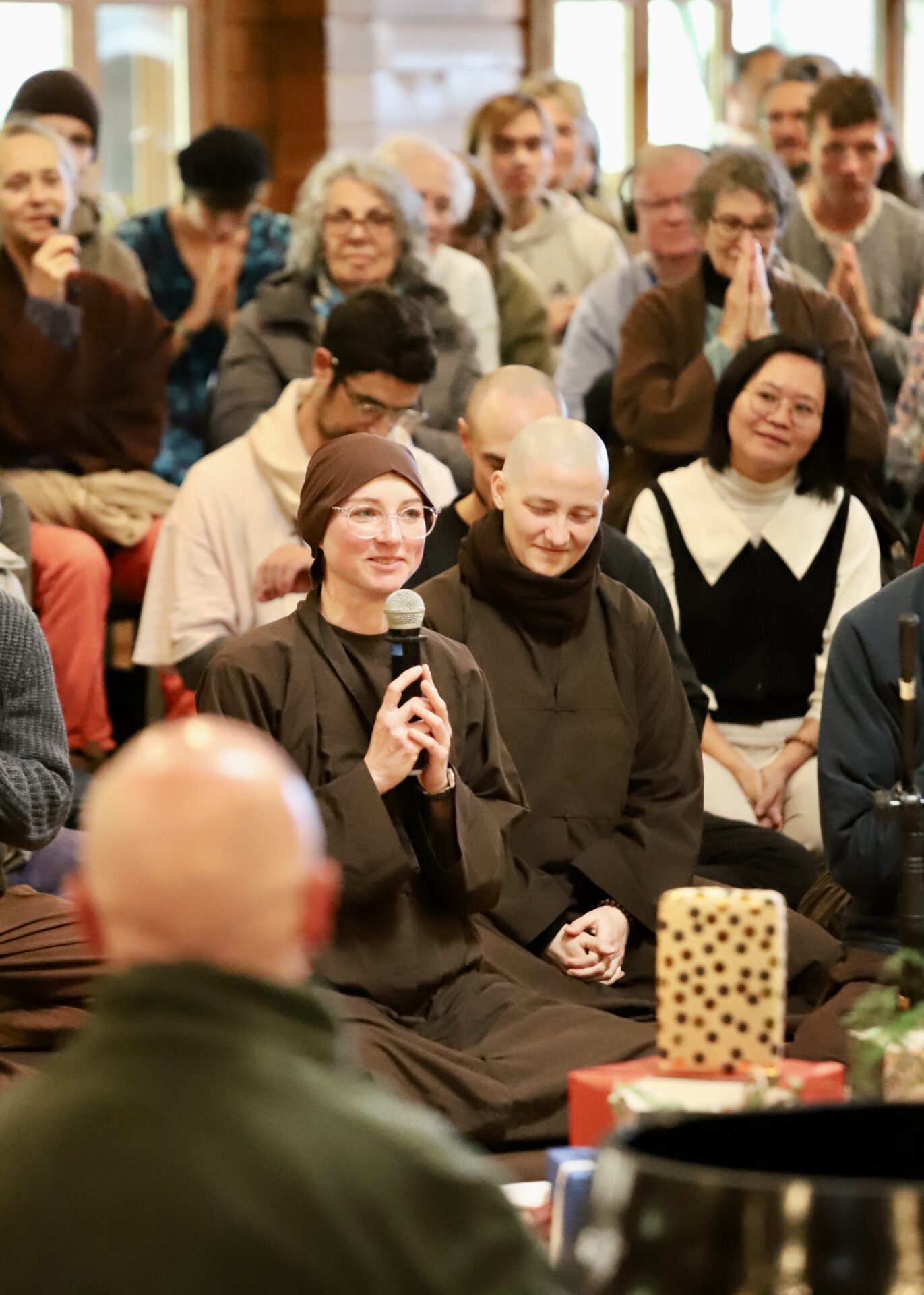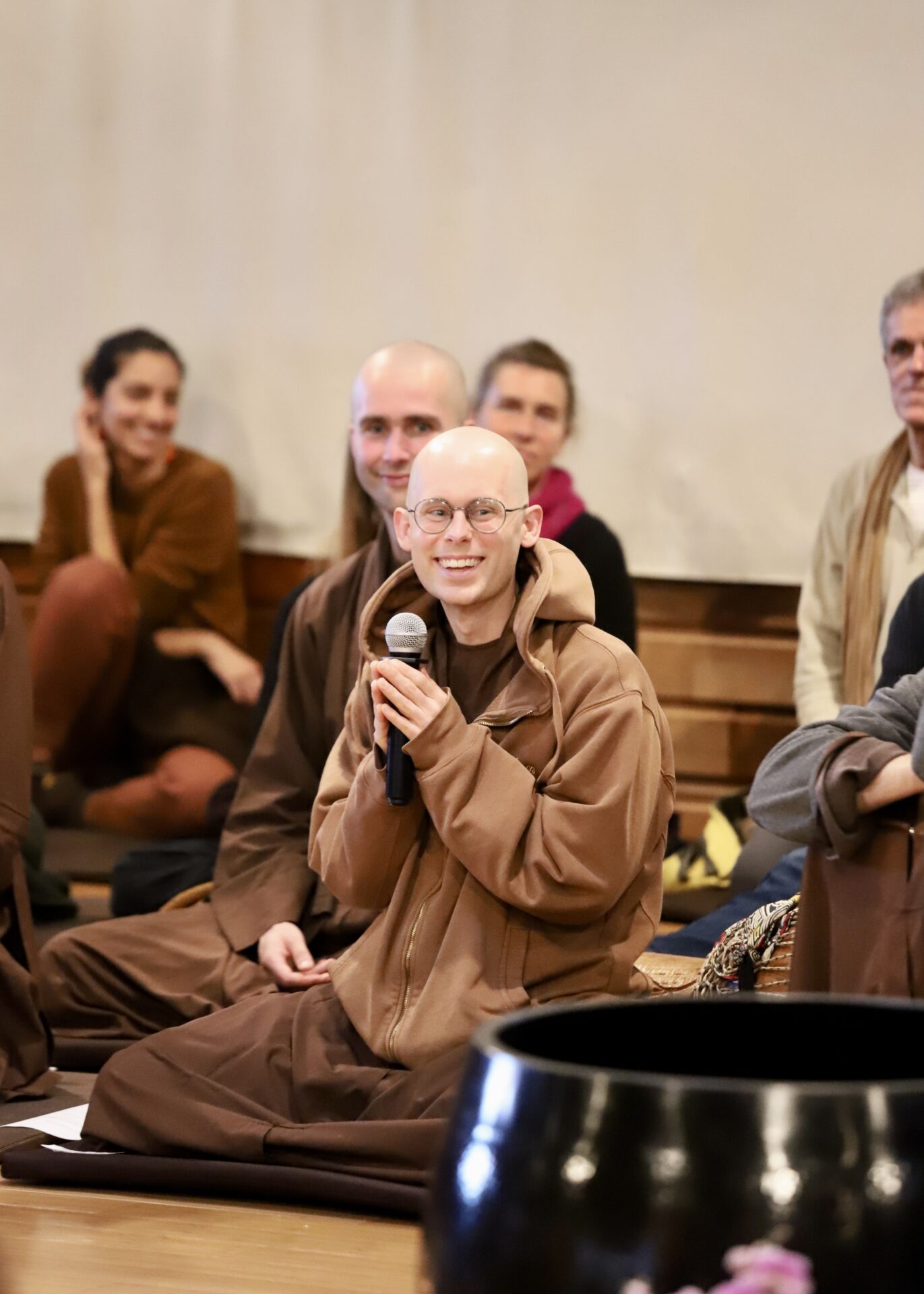 We’re quite amazed by your path. We’re very proud to be here and to be able to stay with you. It was very beautiful and moving and there was a lot of love in this hall and we could feel it. We feel that this decision to become a monk is an enrichment for all of our lives and we are very grateful for that. May your heart always be filled with love and your path be blessed.