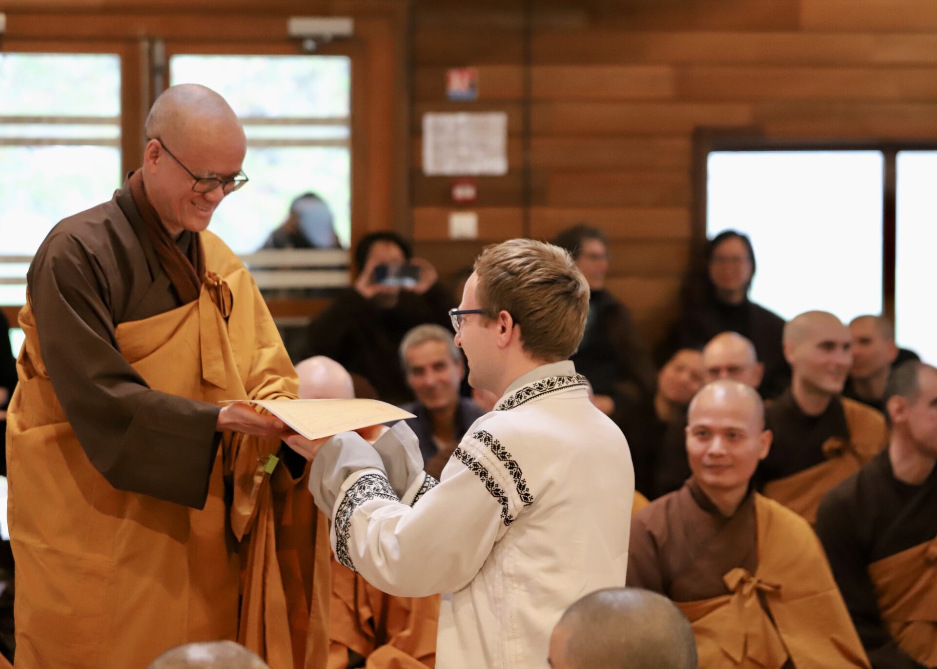The whole day was amazing. So much joy and happiness. So much gratitude for the whole journey that leads me to be here and all the conditions. I am very grateful for the sangha to welcome me and for my ordination family.