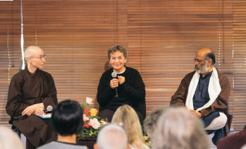 Soeur Hien Nghiem, Christiana Figueres et Shantum Seth ont découvert que telle est la leçon de l’inter-être et de la compréhension : la haine d’une autre personne fait partie de moi, le désespoir d’une autre personne fait partie de moi, de manière très active.