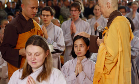 Ce chant, hommage au Bodhisattva de la Grande CompassionAvalokiteshvara, est régulièrement chanté par les monastiques avant un enseignement du Dharma.