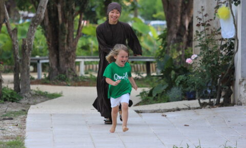 Thây raconta que, la fin du rêve approchant, il se tourna vers le côté de la scène pour chercher son professeur, enthousiaste à l’idée de pouvoir voir son maître. Mais alors que celui-ci était sur le point d’apparaître, Thây se réveilla. Malgré tout, au plus profond de son cœur, une part de lui savait qui était son professeur. Au fil des ans, j’ai entendu Thây raconter cette histoire, laissant toujours la fin ouverte comme une invitation à imaginer et découvrir par nous-mêmes qui pouvait être ce ‘professeur’. C’est ma partie préférée de son récit, car elle nous permet de participer et de terminer l’histoire nous-mêmes. C’est peut-être pour cela que j’ai intériorisé cette histoire et qu’elle s’est manifestée dans mon rêve.