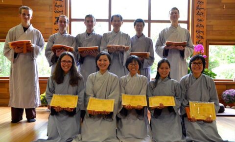 Vivant désormais à Deer Park, je peux dire que l’ordination a été la meilleure décision de ma vie. Je vois que notre Sangha valorise toujours ces valeurs que j’avais perçues lors de ma première retraite au Village des Pruniers. Il y a place pour la simplicité, le jeu, la joie, la profondeur et la sagesse. Il y a, et il y aura toujours, un Thây sage et doux qui nous guidera vers nous-mêmes. Nous sommes une communauté diversifiée, en termes d’âge, de culture et de personnalités, et nous pratiquons ensemble en harmonie. C’est tellement beau, et je suis profondément reconnaissant d’en faire partie. Finalement, j’ai trouvé mon âme soeur parfaite, la Sangha !
