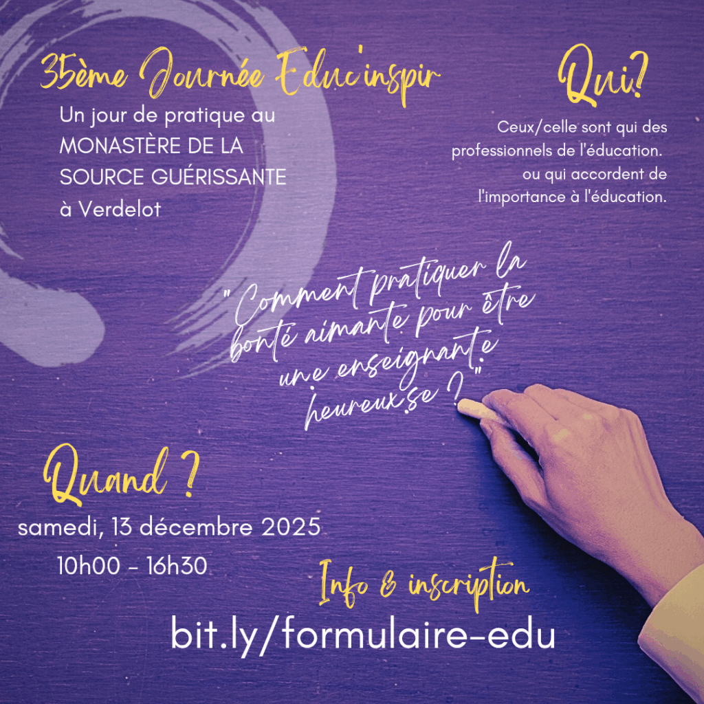 Educ’inspir, groupe d’affinité pour les enseignant.e.s et éducateurs/trice. Seulement pour ceux/celles qui sont déjà pratiqués dans la tradition du Village des pruniers.