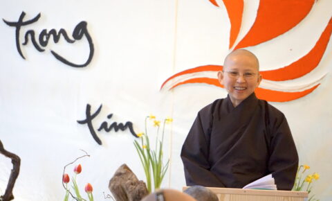 Dharma Teachers (Dharmachāryas) are members of the community who have been selected as teachers because they have extensive spiritual practice and the prerequisites for a happy life. Zen Master Thích Nhất Hạnh (affectionately called “Thầy” by his students), like many other teachers, relies on his students to continue and carry on his work, since Thầy cannot be everywhere where the teachings are needed. When the sangha see that someone is willing and ready to teach the Dharma – not just because of his words, but because of her actions; her practice in daily life – that person is then officially authorised to teach through a ceremony where the Dharma Lamp is transmitted.