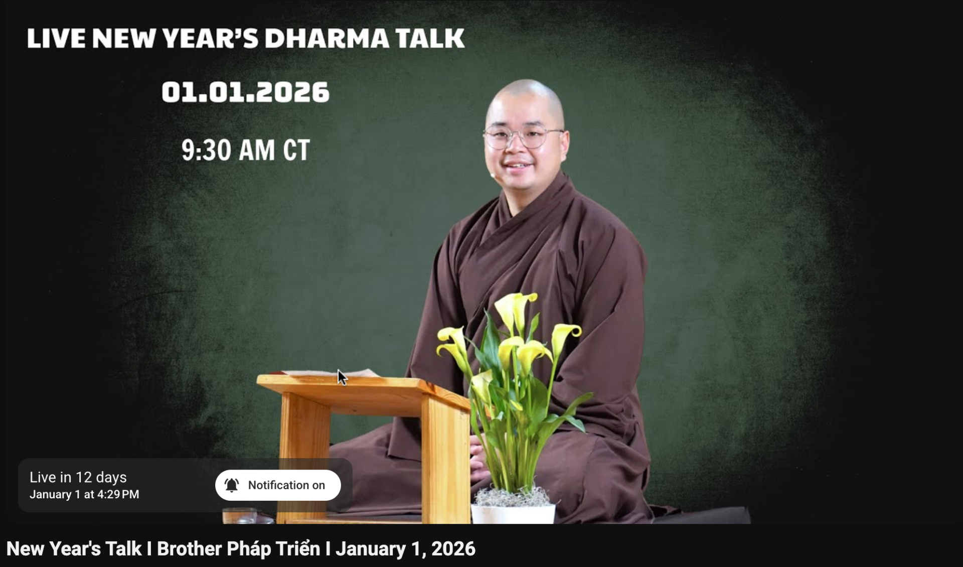 You are warmly invited to join us for a live streamed Dharma talk by Brother Phap Trien at Magnolia Grove Monastery, MS, USA. The Dharma talk will be offered in English.