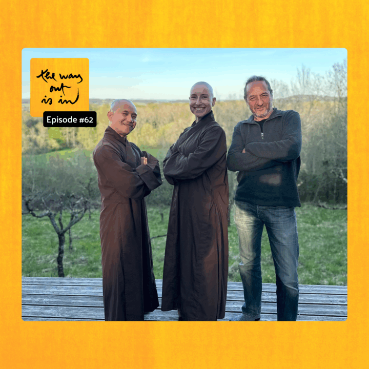 Dear listeners, we hope you have enjoyed this second part of the two part series on the heart of meditation. You can find all previous episodes of this podcast on the Plum Village App. Also on Spotify, Apple Podcasts and all other podcast platforms. And if you like what we do, please subscribe to the Way Out Is In on the platform of your choice. And it’d be wonderful if you could leave a review so that others can feel inspired and discover this podcast.