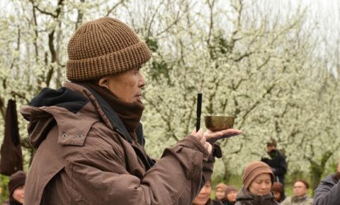 在冬安居後期的一個開示中,我們學習了「三寶」,我們提到 「三寳一體」。意思是說「三寶」中的每一寶包含了另外兩寶。佛之中有法有僧,法之中有佛有僧,僧之中有佛有法。僧團是修習的團體,當中每個人,每位成員都在行、住、坐、臥中修習正念,轉化痛苦,灌溉安樂與幸福的種子。雖然僧團並不是聖僧,但如果僧團有修習正念和轉化,那麼在僧團中就有「聖果」的品質。因此,當我們深刻地接觸僧團時,我們可以接觸到佛與法,因此,僧團是三寶之一。在僧團中,在僧團這塊土壤中,我們可以發芽和成長,修行者若沒有僧團,就無法有所成就。沒有僧團,不管你有多出色,也無法教化眾生;不管你有多出色,也難以修習和轉化。因此我們必須修習皈依僧。如果沒有僧團,就應立刻去想怎樣建立僧團,因為僧團是滋養我們的土壤。
