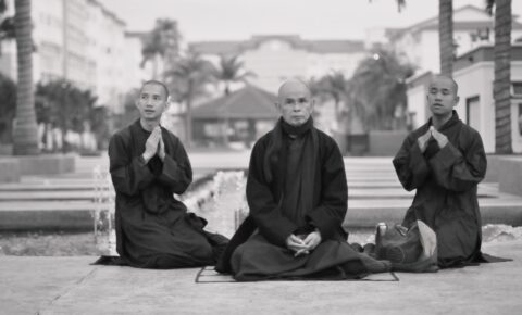 佛陀的滿月游於天空無限的虛空。如果所有生命的河流能夠平靜,清新的月亮將能美好地反映在她們的水面。對所有人而言,這是多麽美妙值得慶祝的晚上:天空、雲朵、月亮、星星和水。在無盡的祥和中,天空、雲朵、月亮、星星和水,享受一起禪行。他們行走但沒有需要抵達的目的地,甚至連海洋都不是目的地。他們在當下感到幸福。河流不需要到達海洋以成爲水。她知道自己本質是水,同時是月亮、天空、星星和雪。